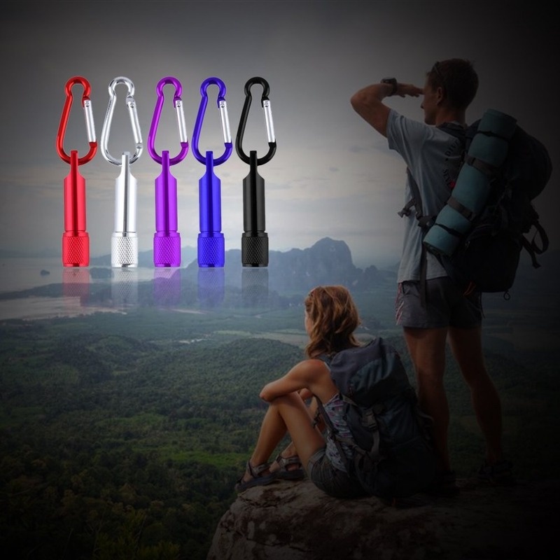 LED Mini Carabiner Flashlights/ Outdoor Camping Pocket Torch Light with Keyring/ Portable Battery Operated Aluminum Keychain Lamp