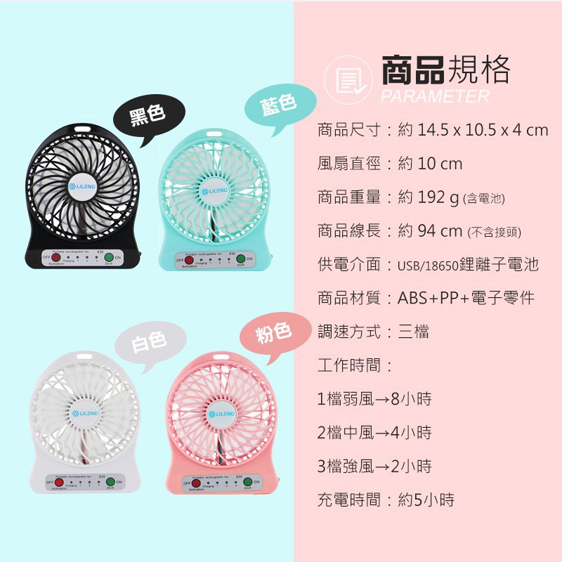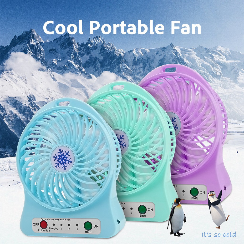 LED Mini USB Charging Fan Portable Rechargeable Desk Mini USB Charging fan Put Battery