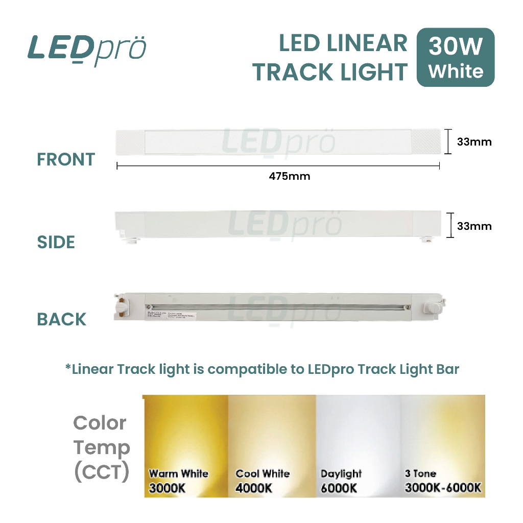 LED PRO LED Linear Track Light 20W/30W Flood Light Linear Light 6000K 4000K 3000K Tri Tone