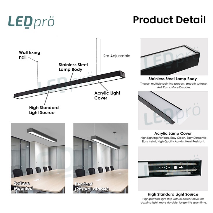 LED PRO Light Led Haning Light/ Office Light/ Long Ceiling Light/ Surface Mounted Light Rectangle 1200mm*70mm 36W
