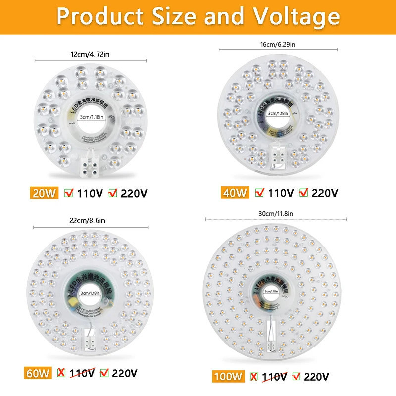 LED Panel Light Ceiling Lights LED Module 220V 110V Ceiling Fan LED Light Kit 20W 40W 60W 100W Round Replacement LED Panel Board