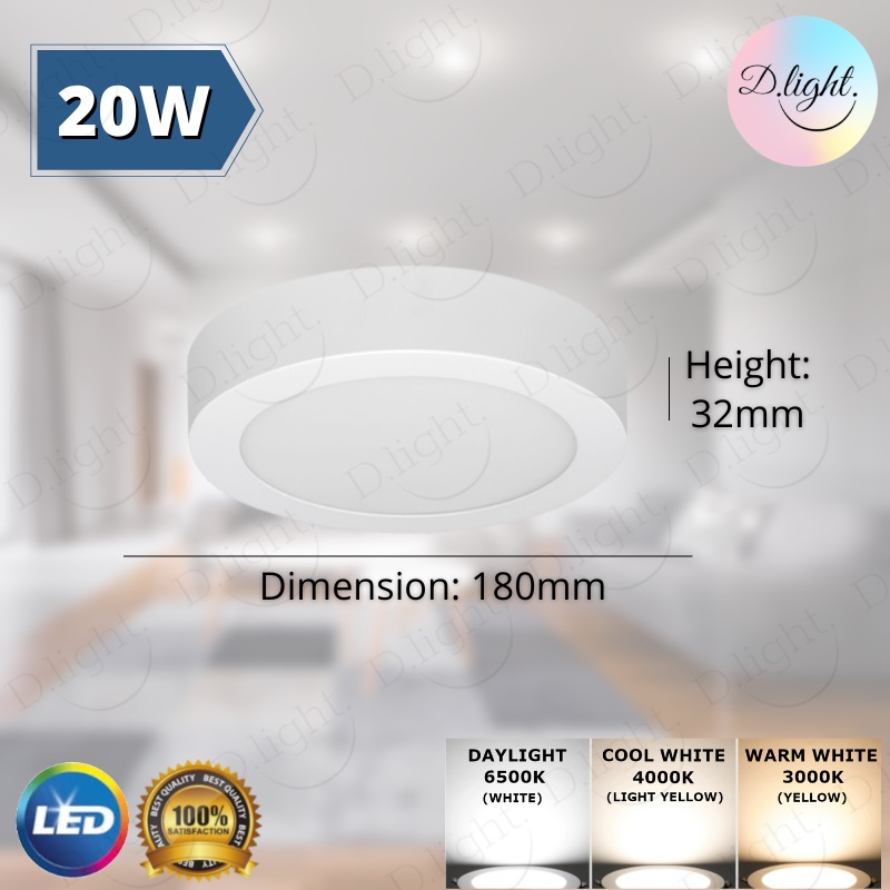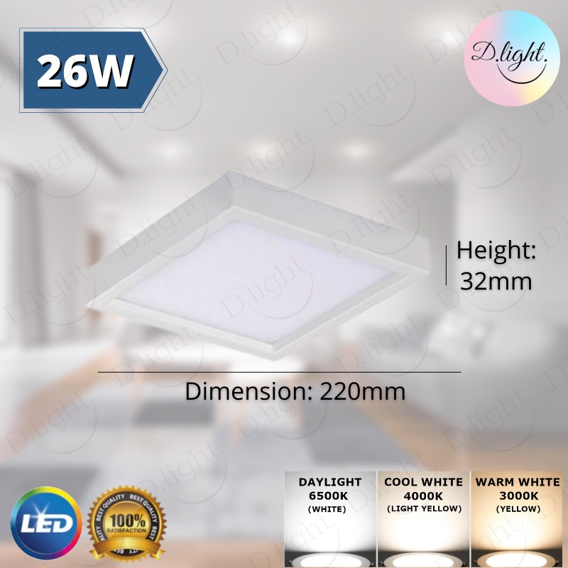 LED SURFACE DOWNLIGHT 6'' 8'' 20W 26W ROUND SQUARE WHITE FRAME PANEL LIGHT lampu Siling dinding CEILING LIGHT LED Ceiling Light