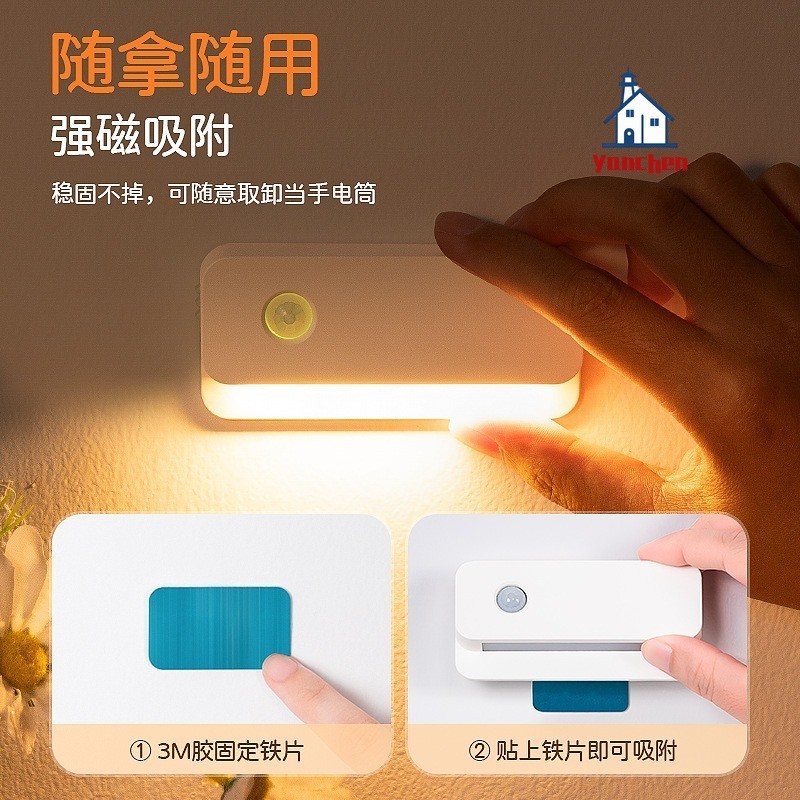 LED Smart Motion Sensor Night Light Wireless Type-C Rechargeable Sensor Wall Light, With Motion Sensor Upper And Lower Glow Protect Eyes Suitable For Bedroom, Hallway, Cabinet, Bathroom