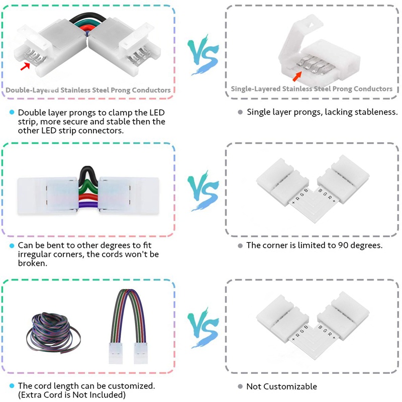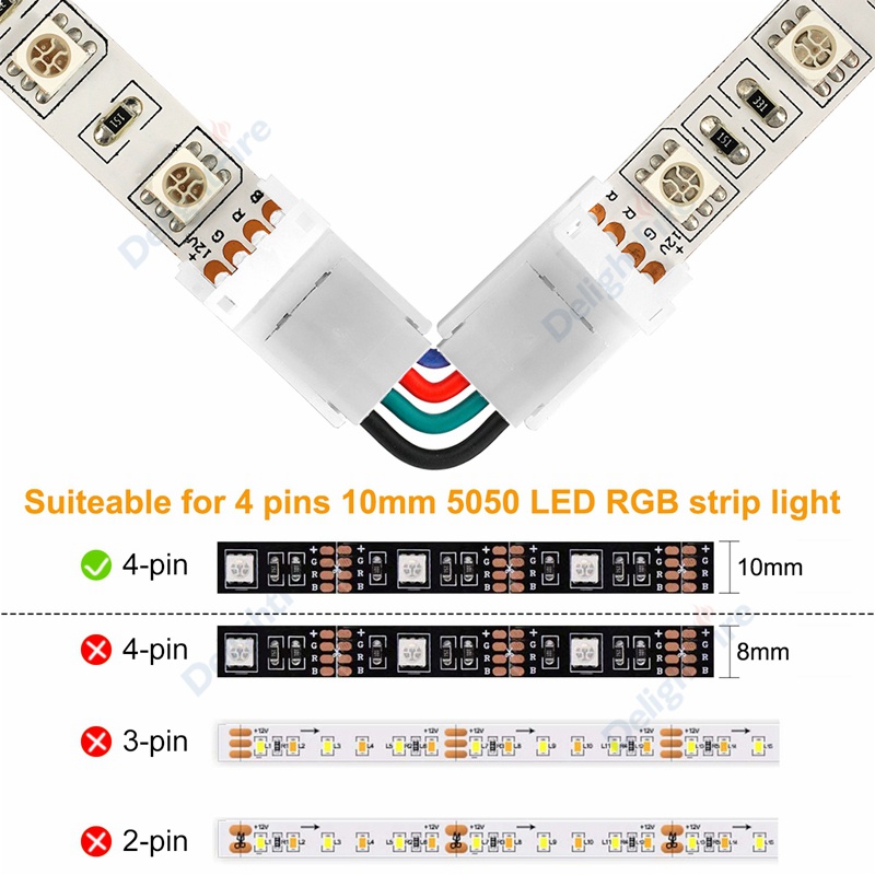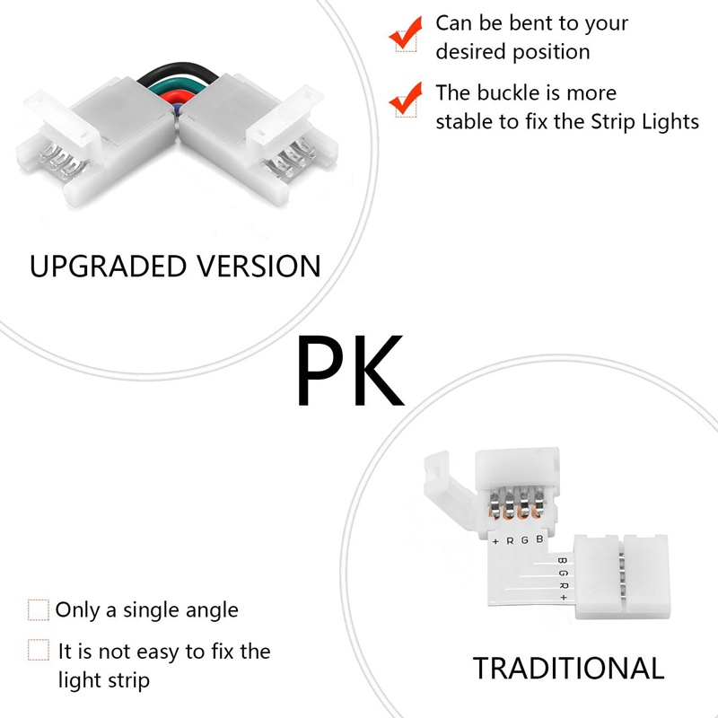 LED Strip Connector 2/3/4 Pin 8/10mm Right Angle Adjustable Connector For 3528/5050 SMD RGB LED Strip Lights 90 Degree Corner