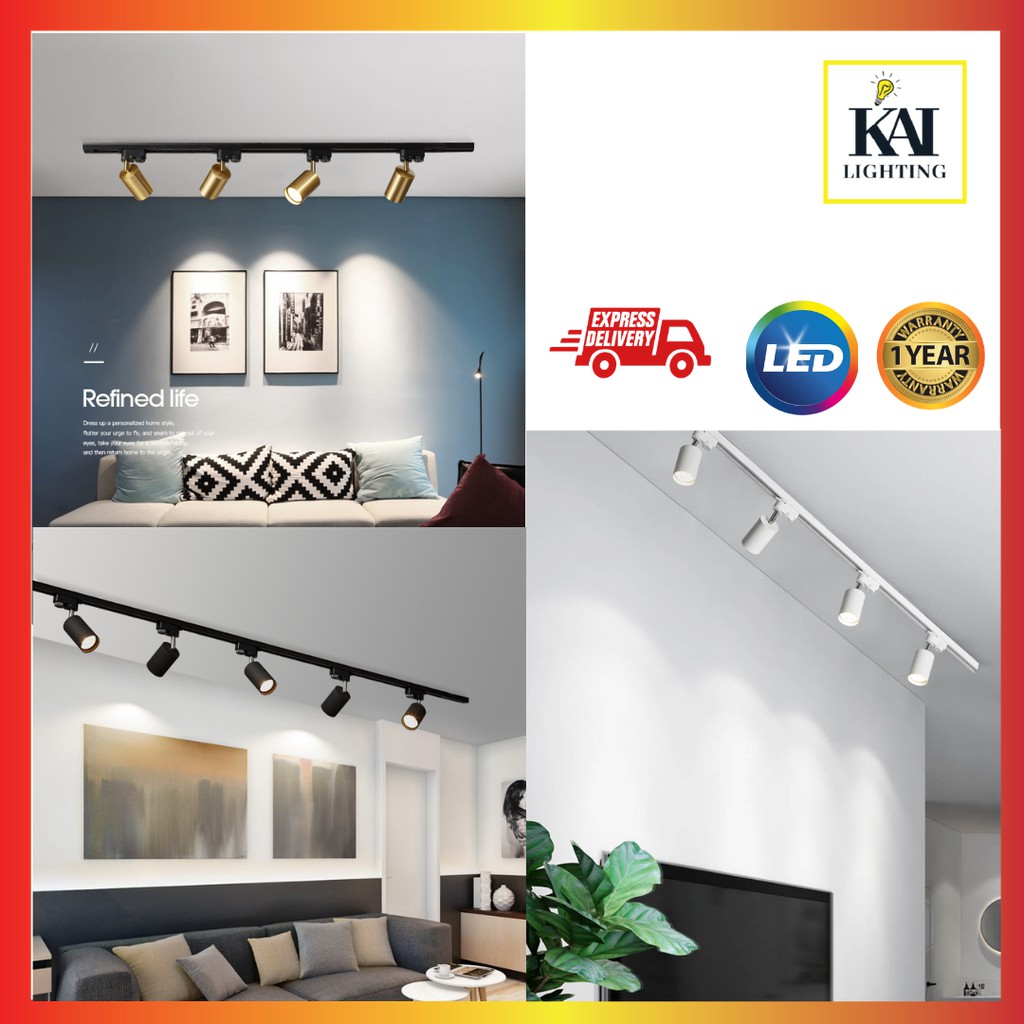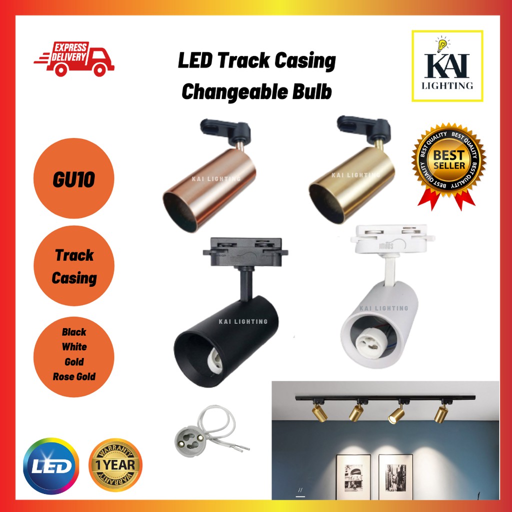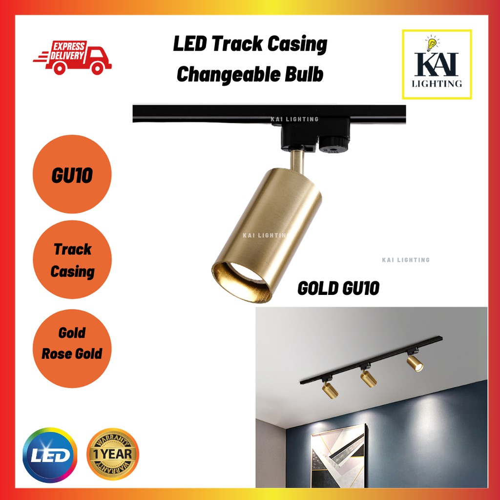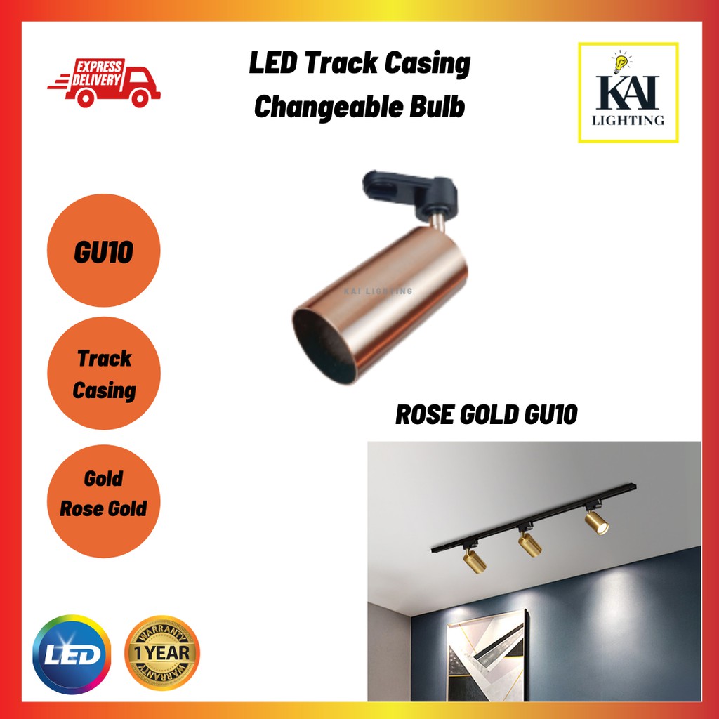 LED Track Light Lampu Track GU10 MR16 Bulb Gold Rose Gold Color Track Light Track Rail Light Spotlight [ 1 Year Warranty