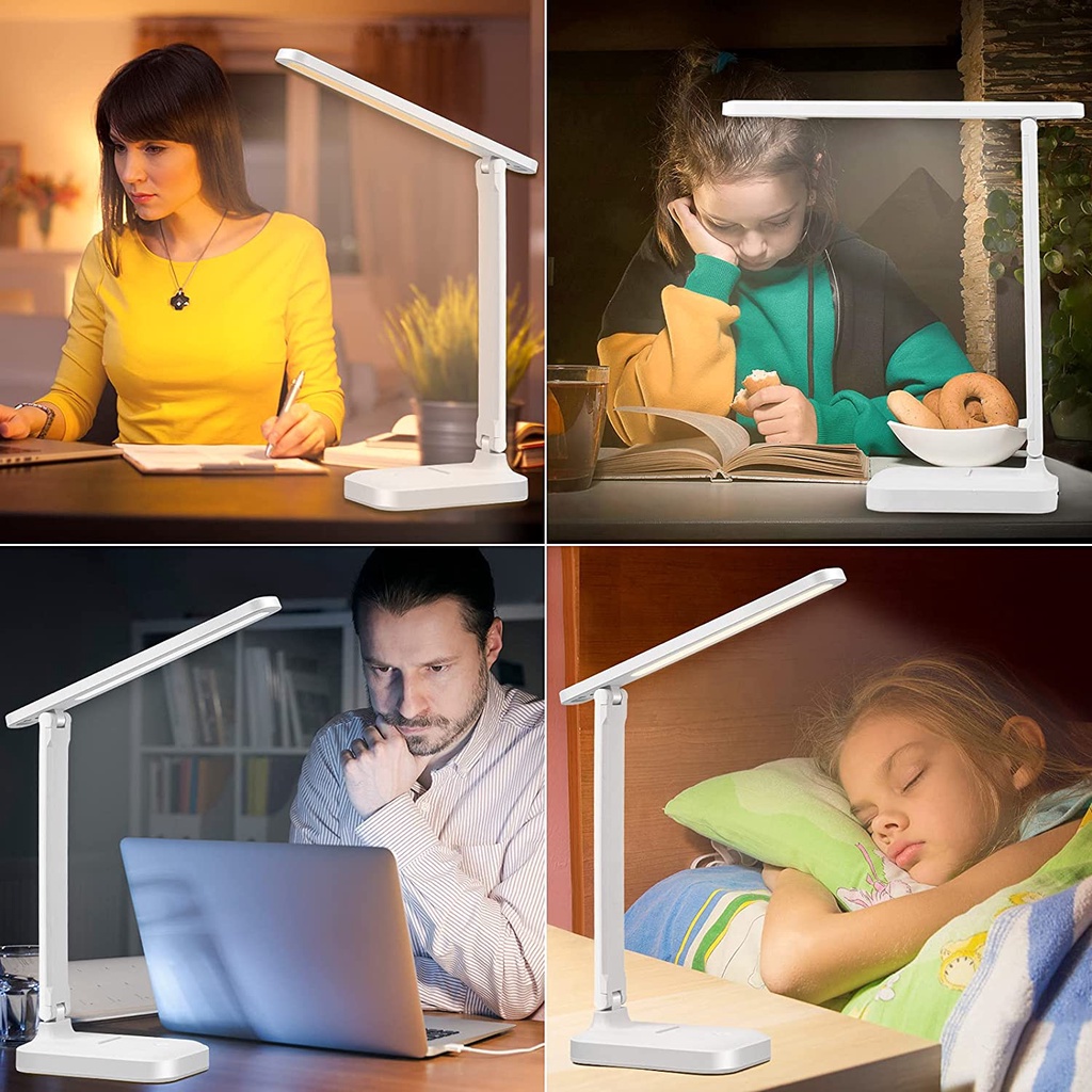 LED study lamp folding table lamp three-color night light dimmable touch foldable eye protection bedside reading charging and plug-in dual-use