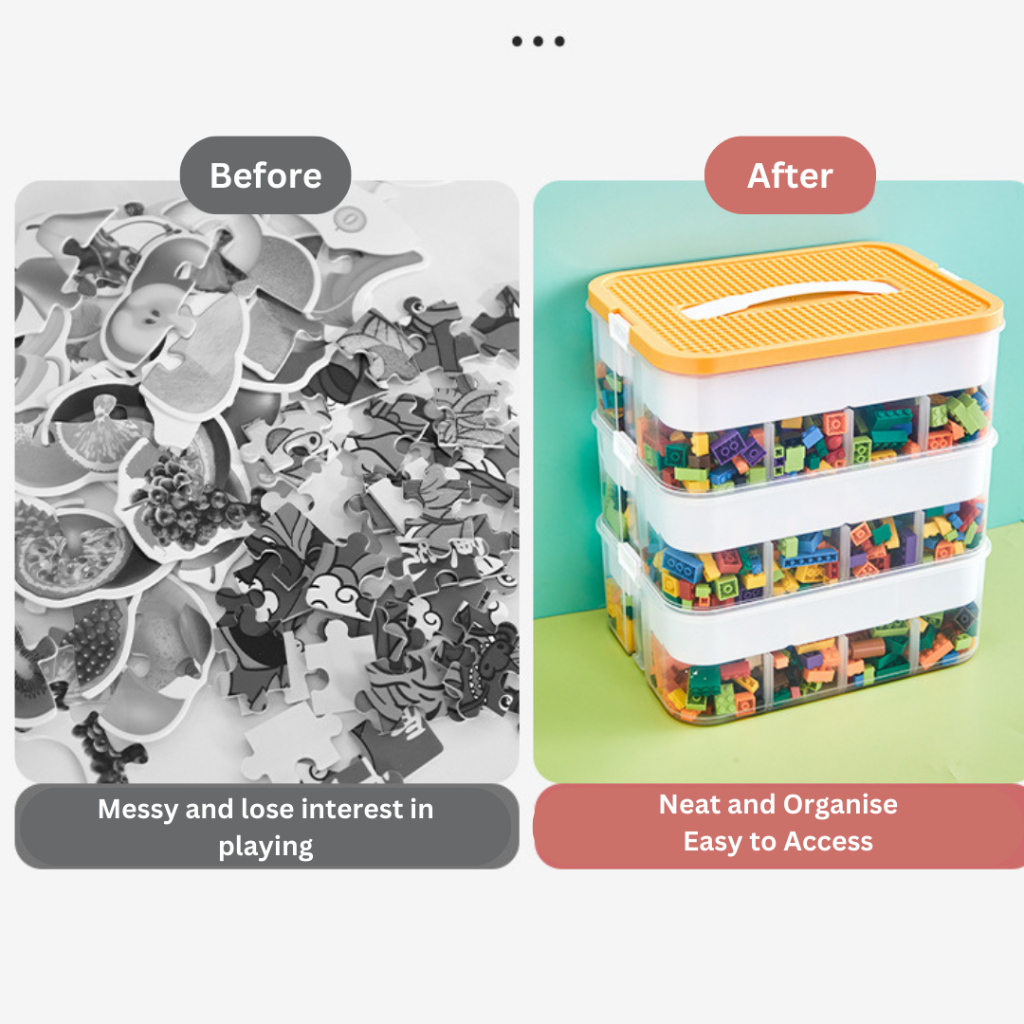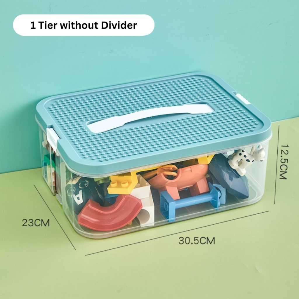 LEGO Inspired STORAGE BOX with Divider Stackable Transparent Clear Plastic Lightweight Multi Tier Toys Organiser