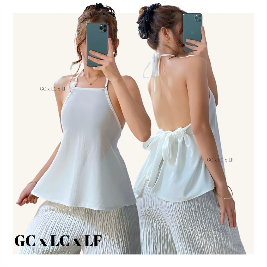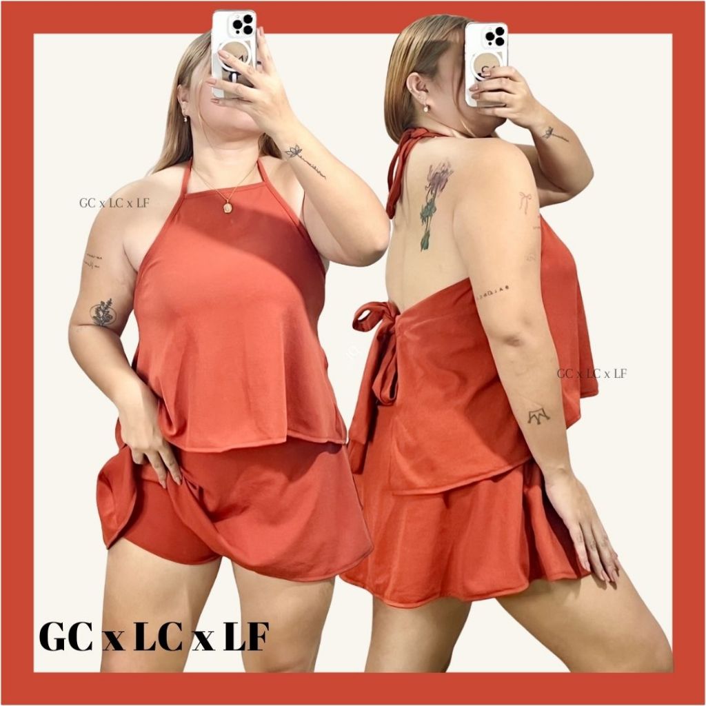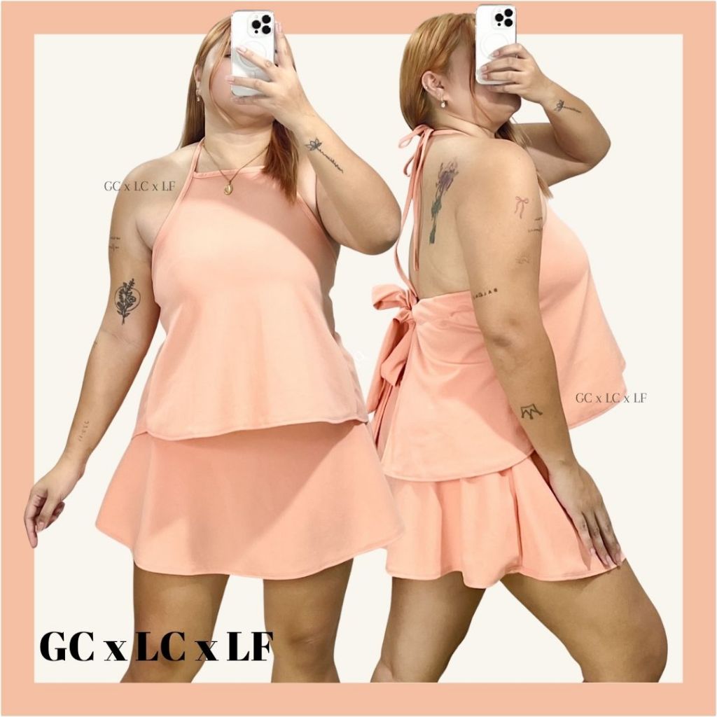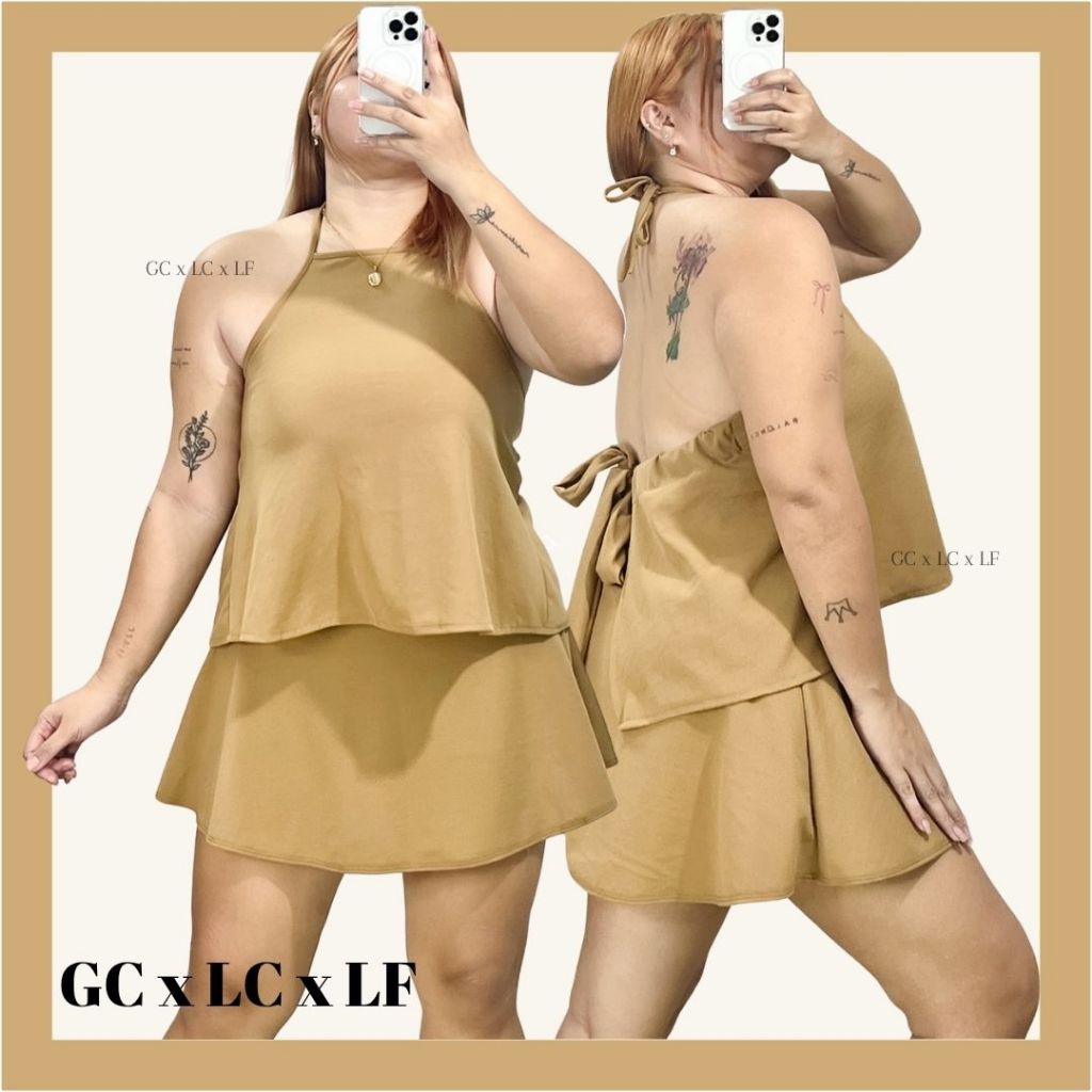 LF CIANNE Mini Skort Terno | Sleeveless Halter Self Tie Backless | Gartered Skort | Crepe Fabric