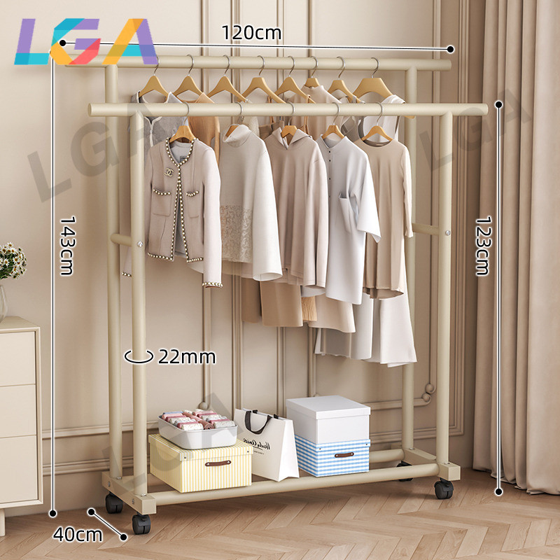 LGA Clothes Drying Rack Adjustable Single & Double Pole Laundry Clothes Stand Rack Clothing Portable Hanging with Wheels