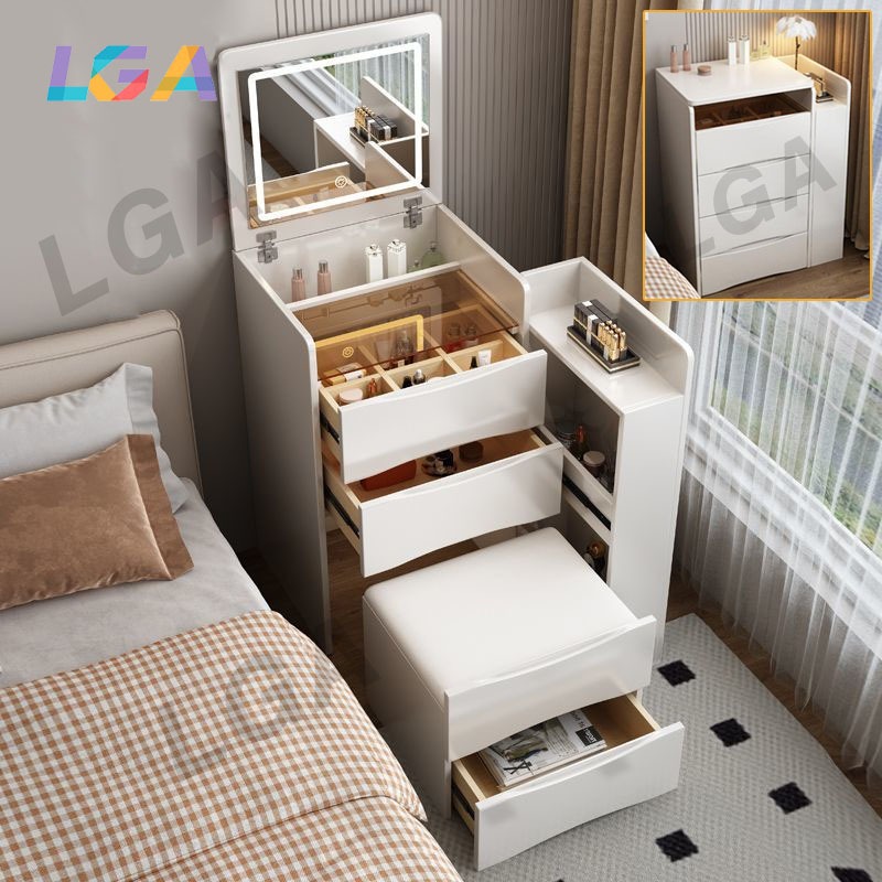LGA Dressing Table Mirror And Chairs, Makeup Table Drawers, Lighted Mirror, 3 Colours Dimmable, Bedroom Dresser With Stool Storage