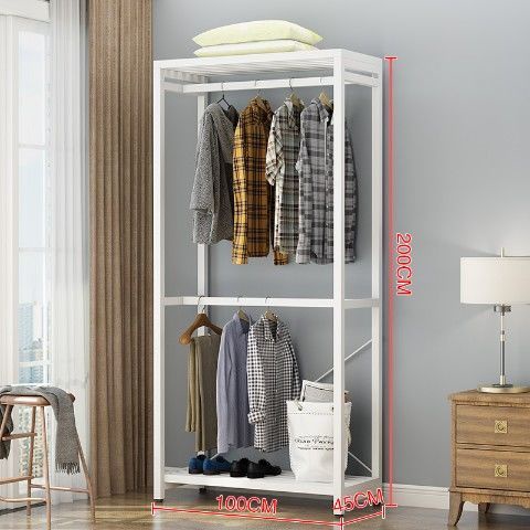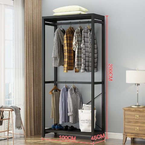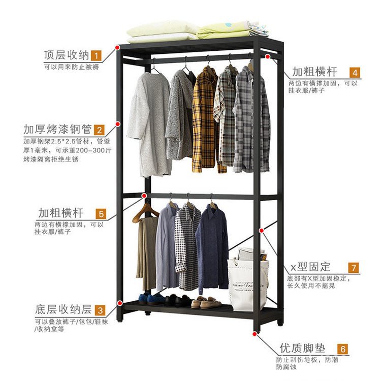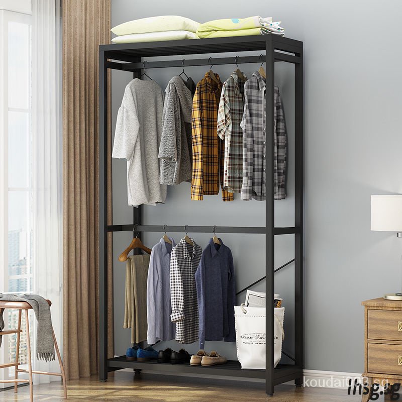 LHSG Metal Clothes Rack Bedroom Multifunctional Storage Iron Art Floor Hanging Clothes Rack Wardrobe UQ2P