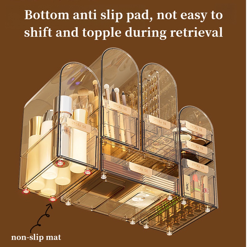 LHSG Simple, Transparent, Light, Luxurious, Dustproof Makeup Box With Lid Storage Box, Complete Set Of Dressing Table, Lipstick, And Skincare Products Storage Rack