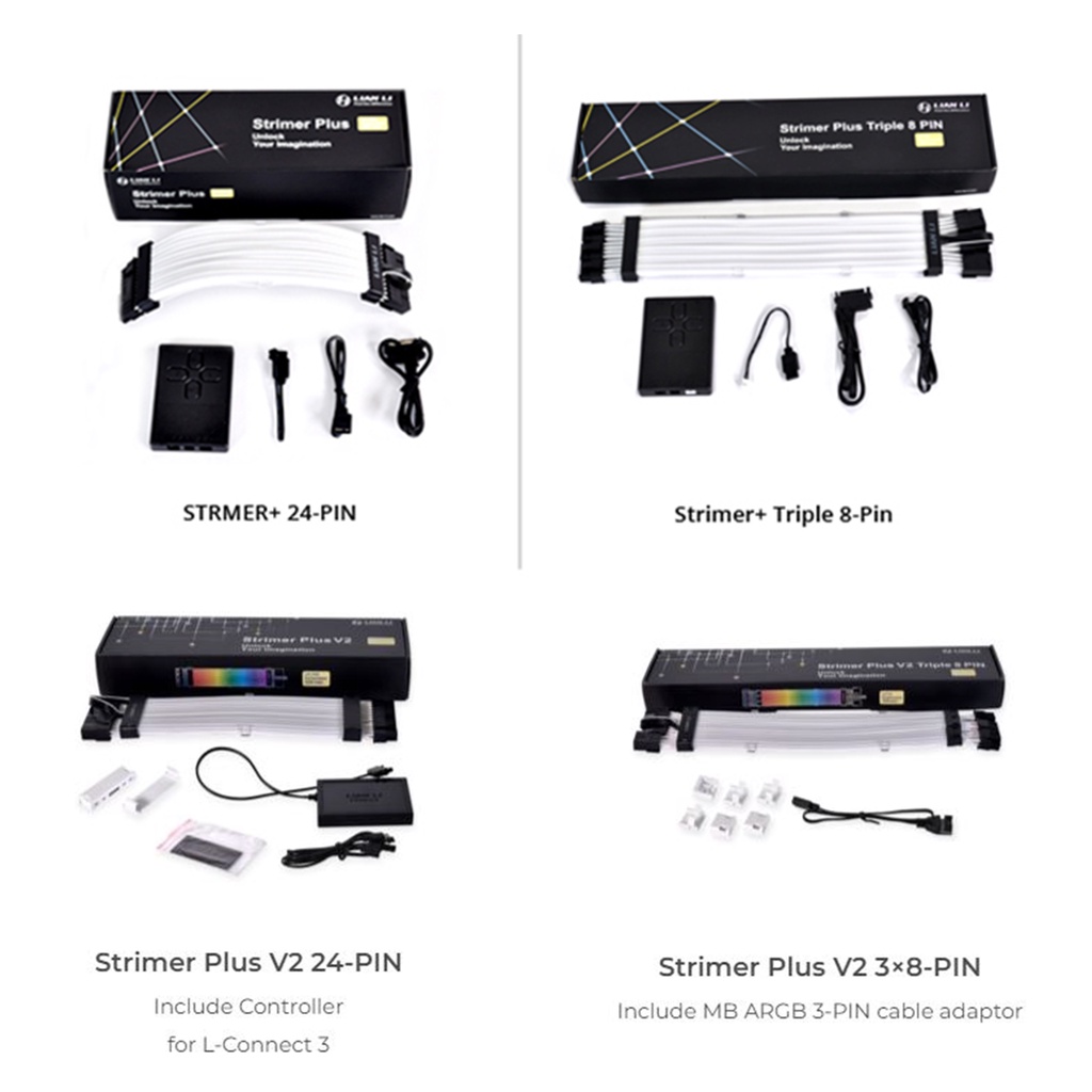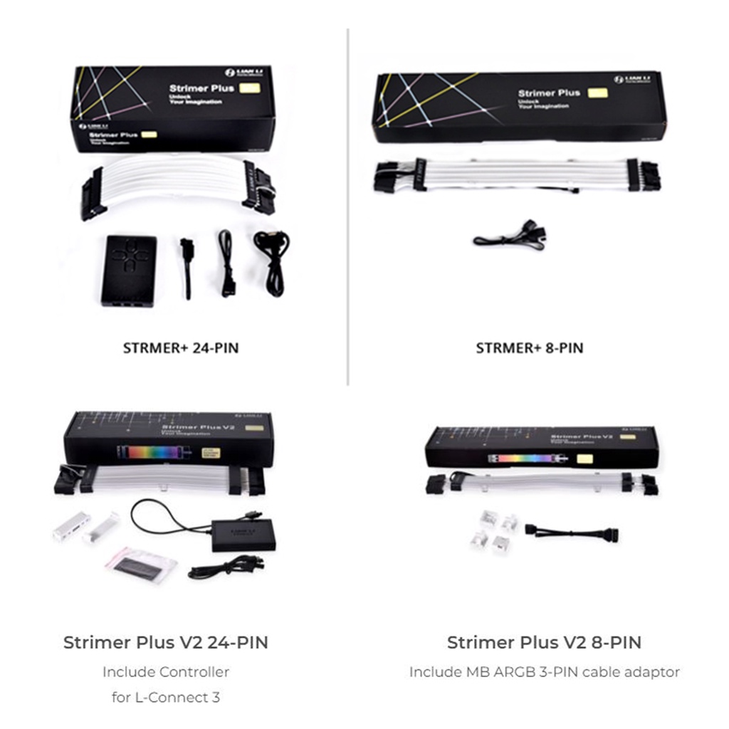 LIAN LI STRIMER PLUS V1 / V2 ARGB POWER SUPPLY EXTENSION ARGB CABLES | GPU 8 PIN MOTHERBOARD 24 PIN ADDRESSABLE ARGB