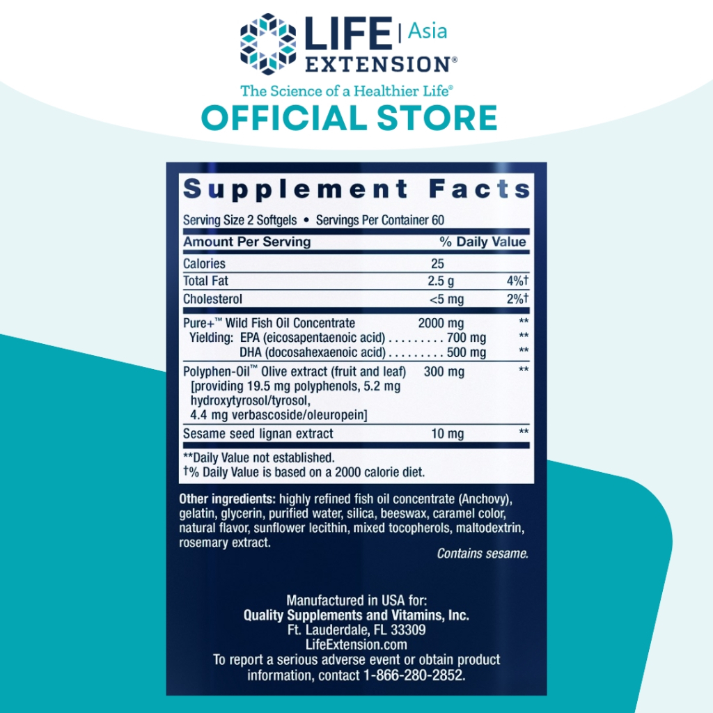 LIFE EXTENSION Super Omega-3 EPA/DHA Fish Oil, Sesame Lignans & Olive Extract Omega 3 Fatty Acids 120 softgels