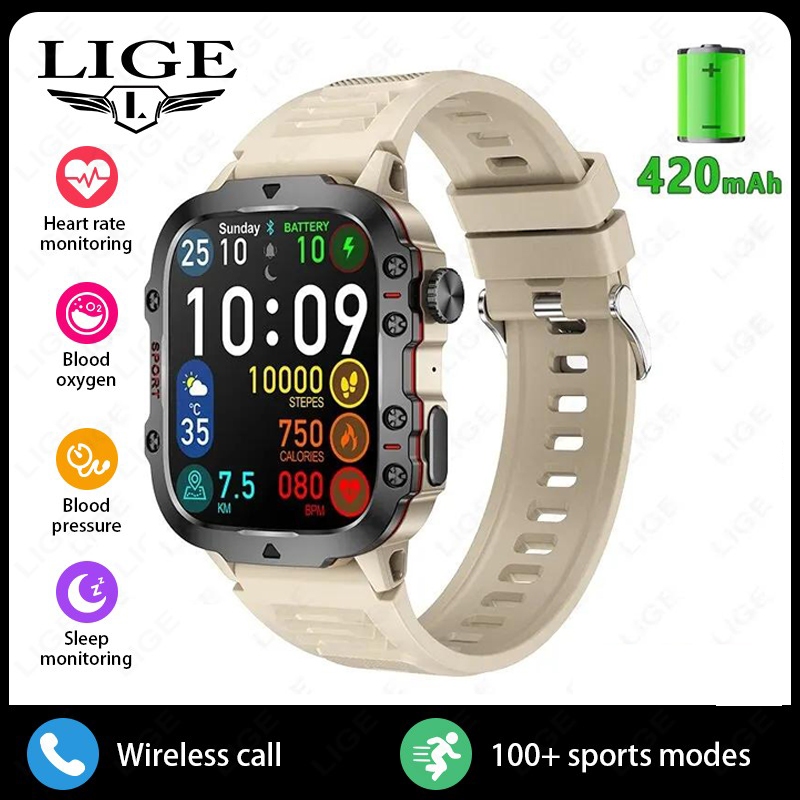 LIGE Bluetooth Call Smart Watch Men Sports Fitness Waterproof Voice Assistant 1.96 Inch Full Touch Screen Smartwatch For Android iOS