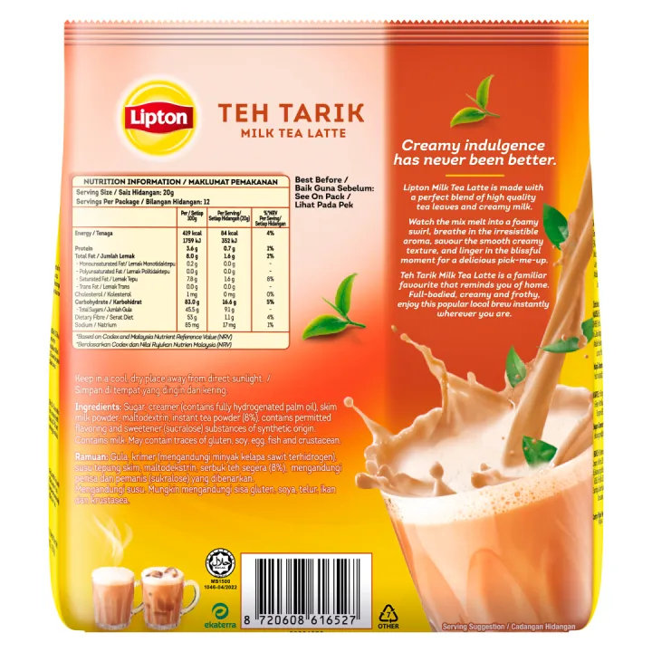 LIPTON Milk Tea Latte Teh Tarik 21g x 12 Sachets