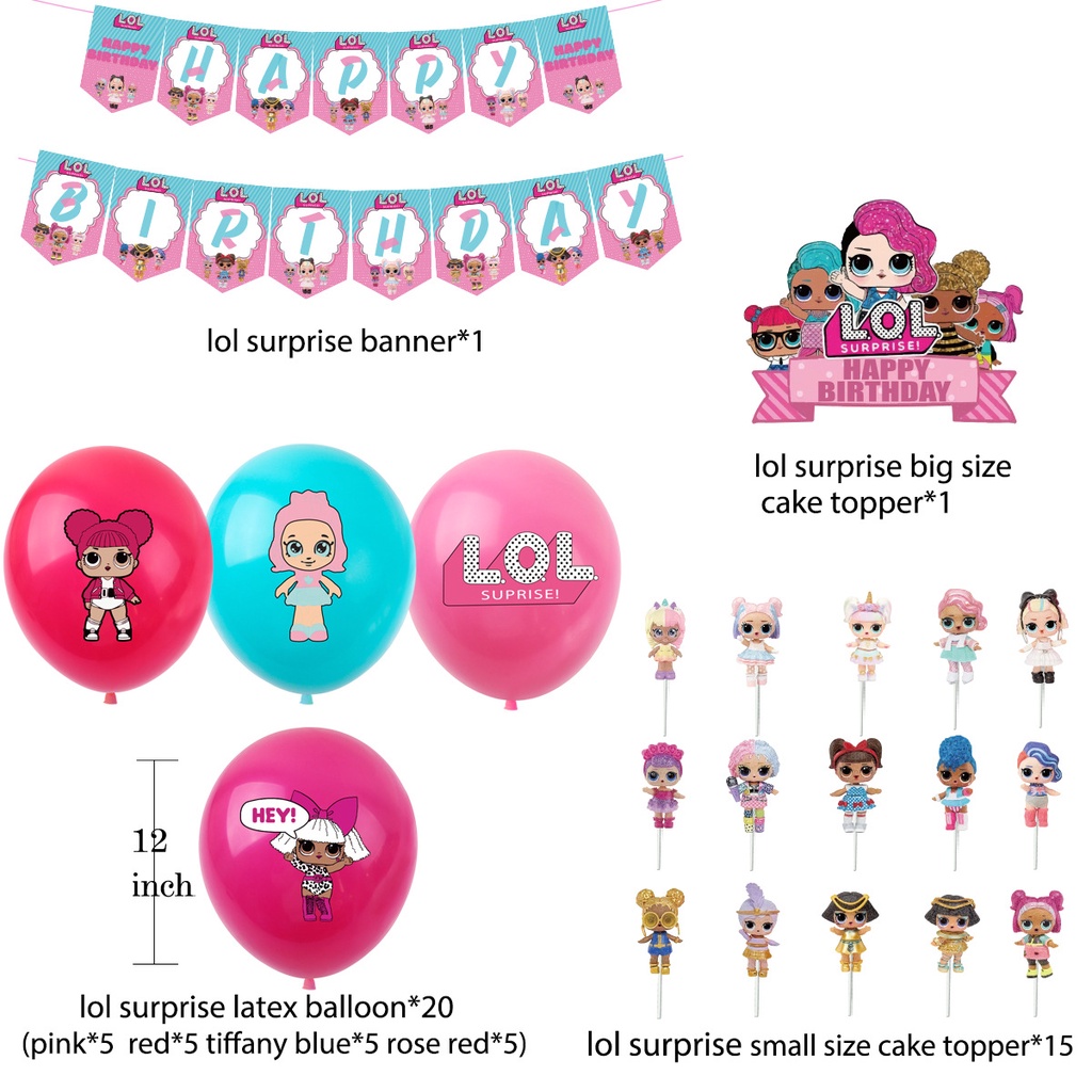 LOL Surprise Party Supplies Birthday Banner Cake Topper Cupcake Toppers Latex Balloons Theme Party for Kids Decorations