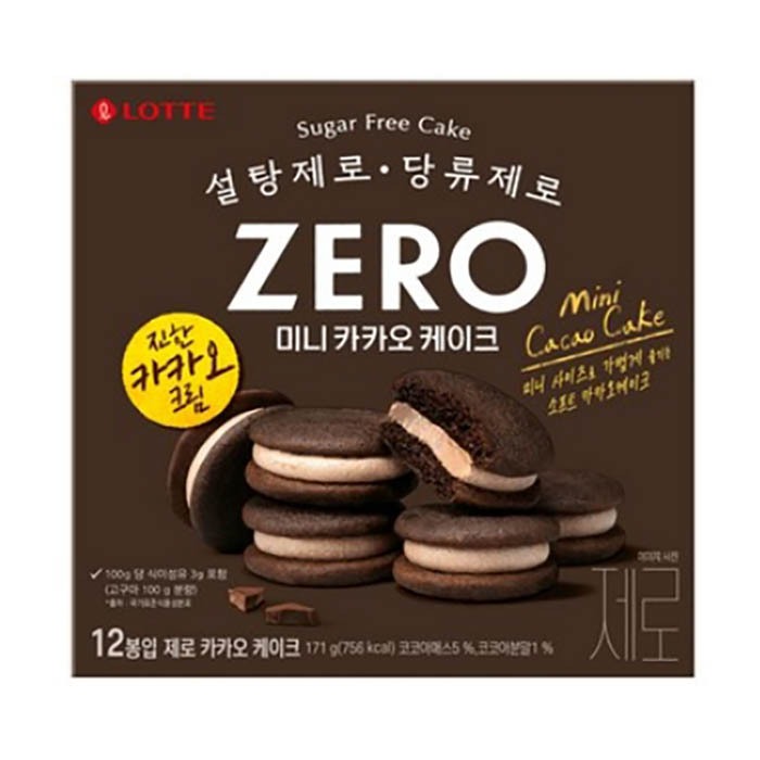 [LOTTE] Zero Sugar Free Snacks Series - Chocolate Chip Cookie / Cacao Cake / Jelly / Sandwich [K-Snack]