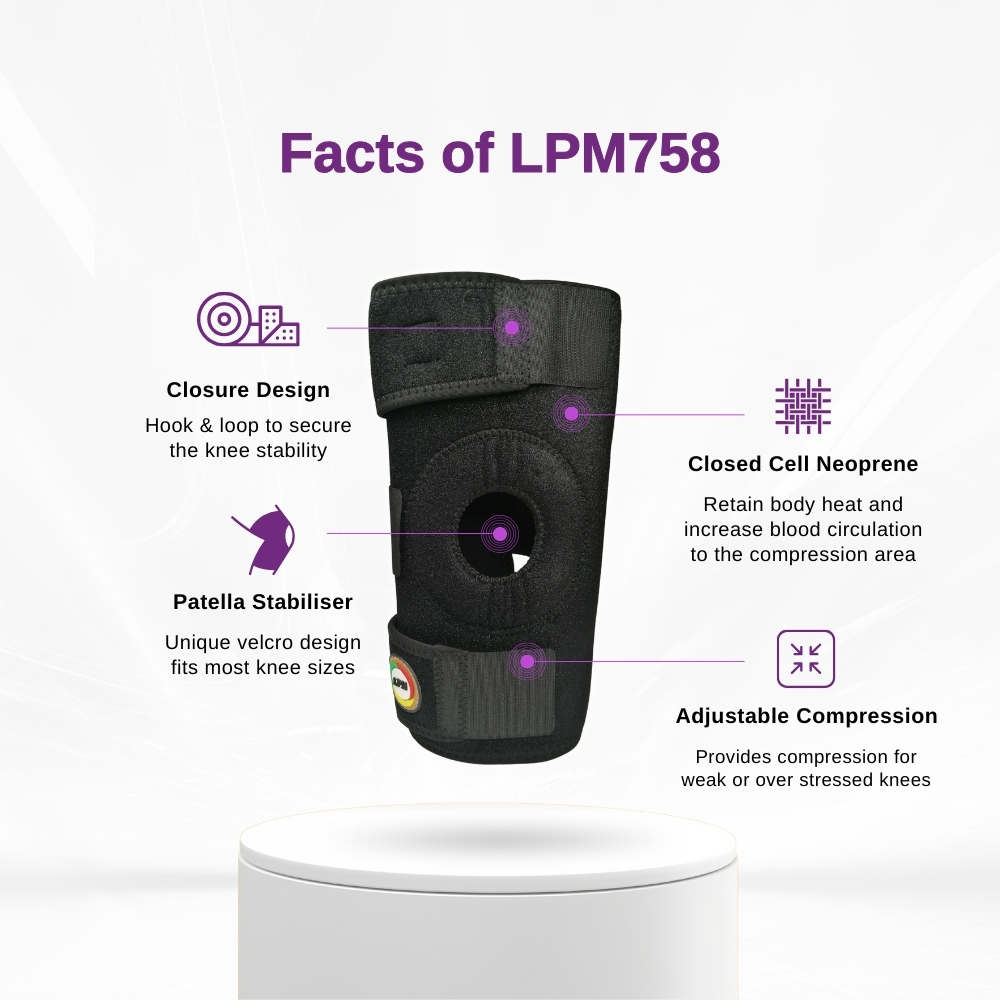 LPM Knee Guard 758 Adjustable Knee Support with Open Patella Thick Closed Cell Neoprene for Knee Pain Relief