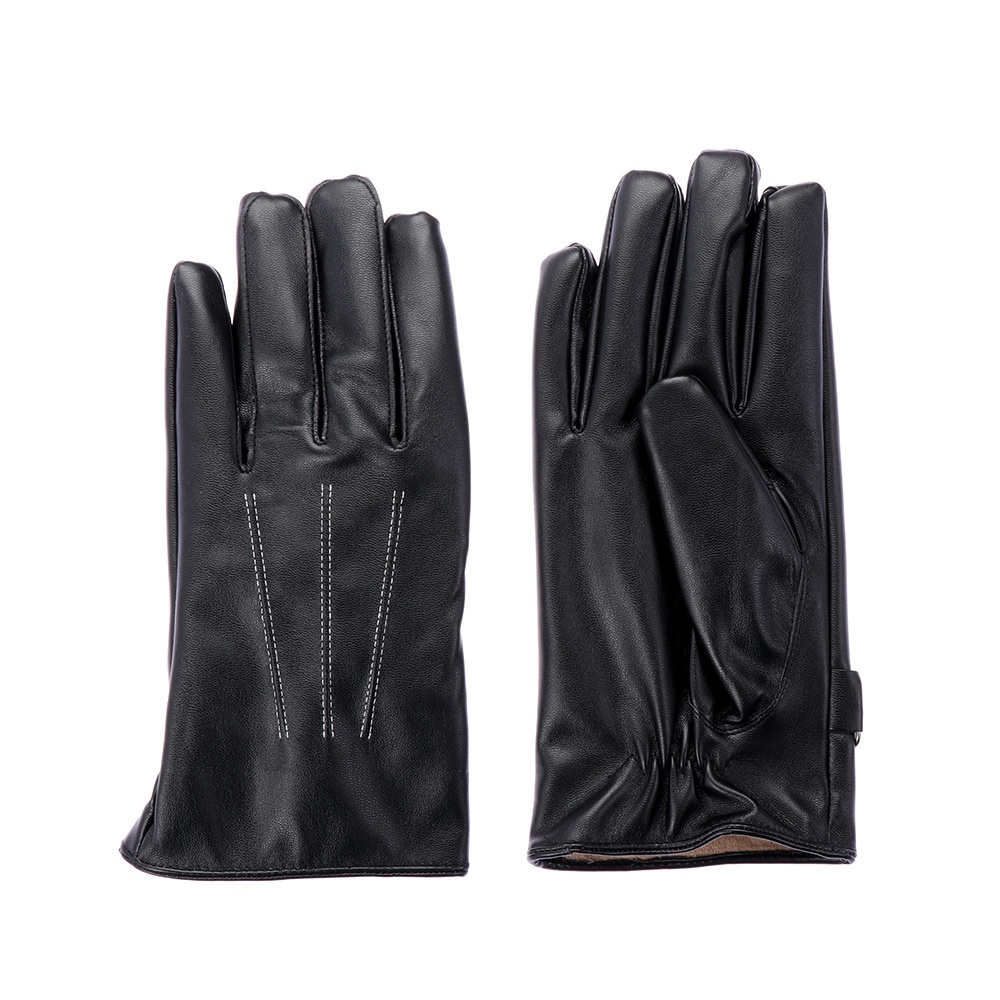 LUCKY Black Fleece Thermal Winter Warm Driving Gloves Leather Gloves Windproof Waterproof Full Finge Men's Touch Screen