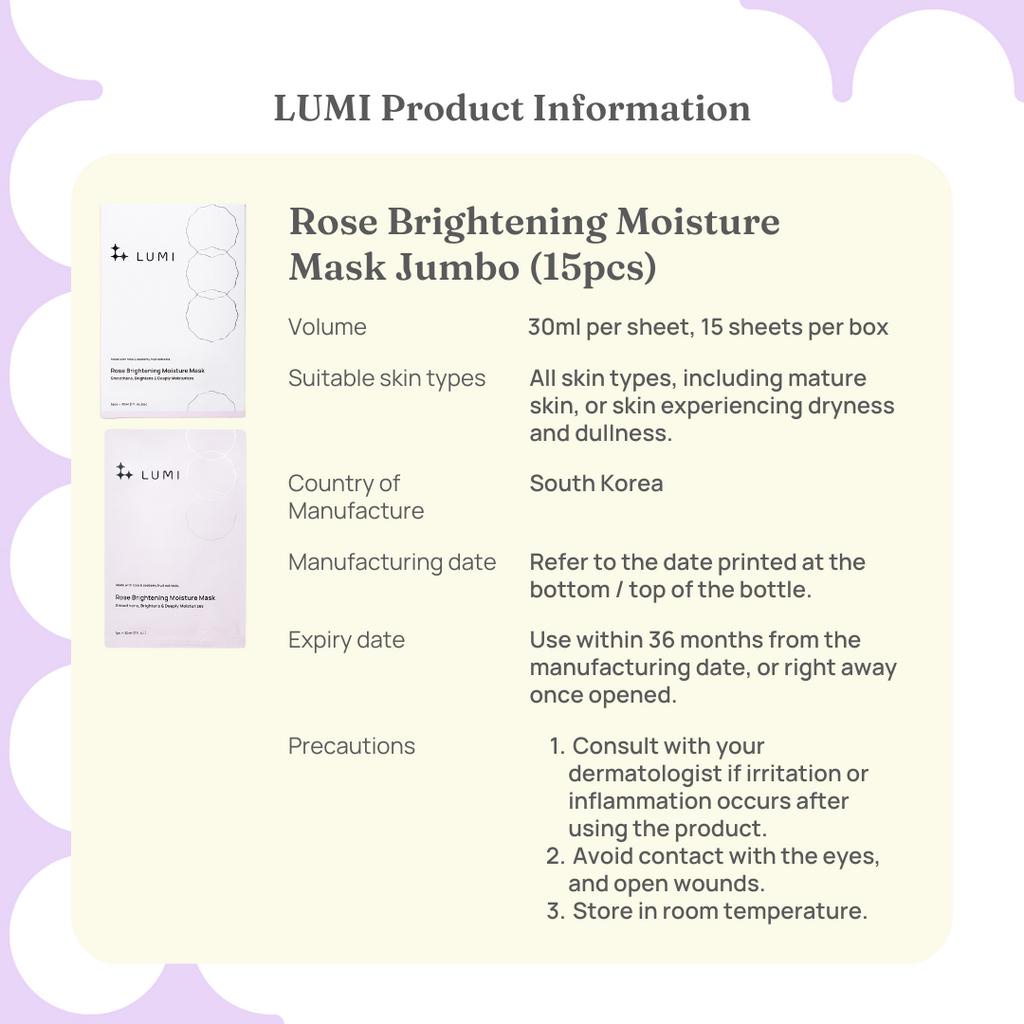 LUMI Rose Brightening Moisture Mask Jumbo (15 Sheets/Box)