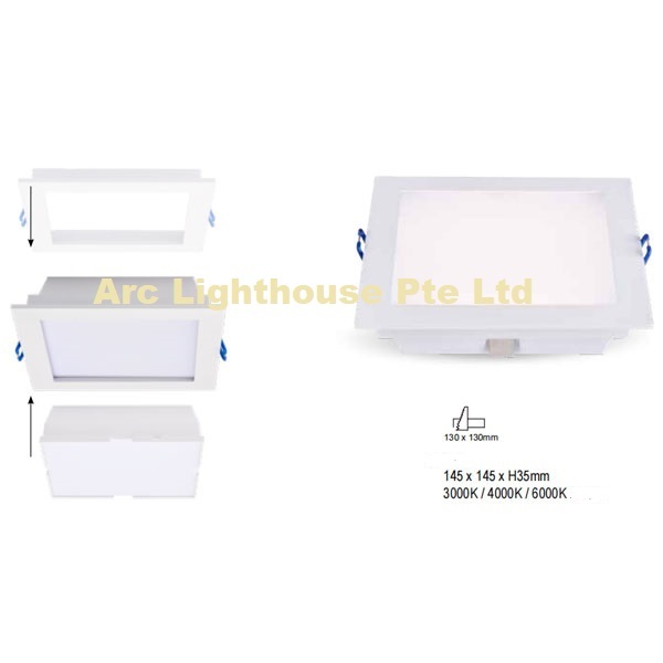 LUZ Detachable Recessed LED Downlight Square 15W (CUTOUT 125x125mm)