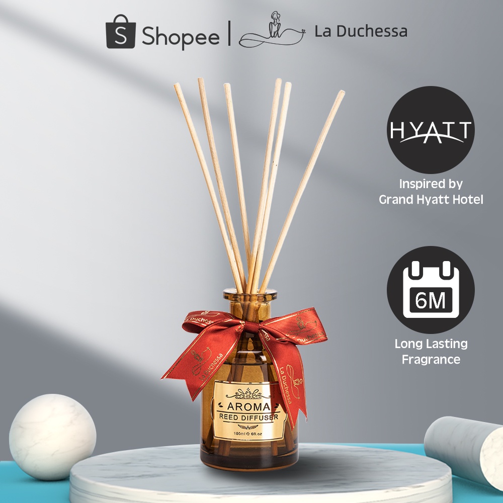 La Duchessa Reed Diffuser, 180ml | Inspired by Grand Hyatt Hotel | Essential Oil | Home & Office Diffuser | Rattan Stick