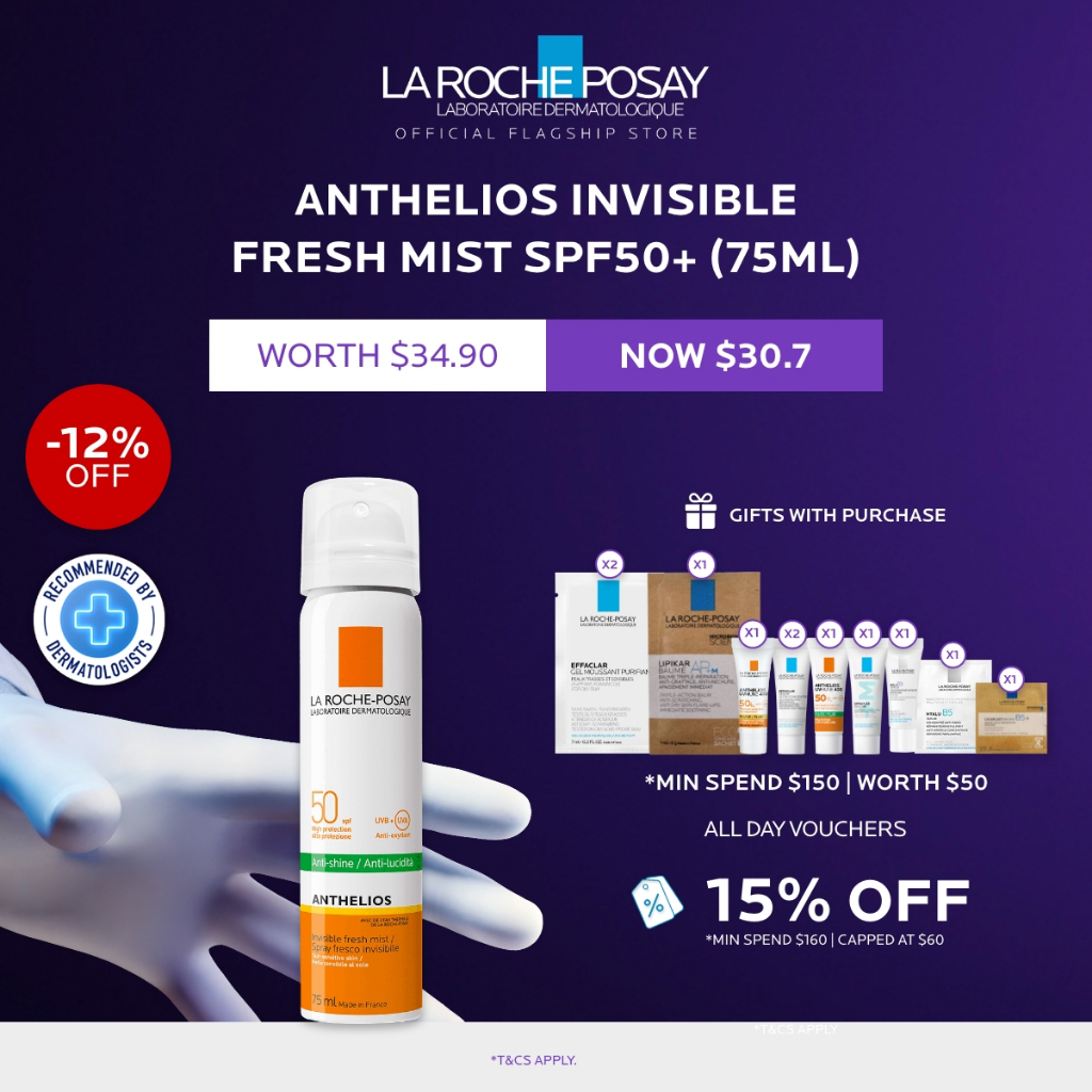 La Roche Posay Anthelios SPF 50 Anti-Shine Invisible Fresh Mist Sunscreen 75ml [Normal - Combination Skin]
