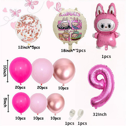 Labubu Balloon birthday decor set Balloon1-9 th Foil Balloon Baby Shower Boy Girl Birthday Party Decoration
