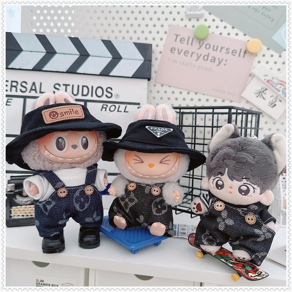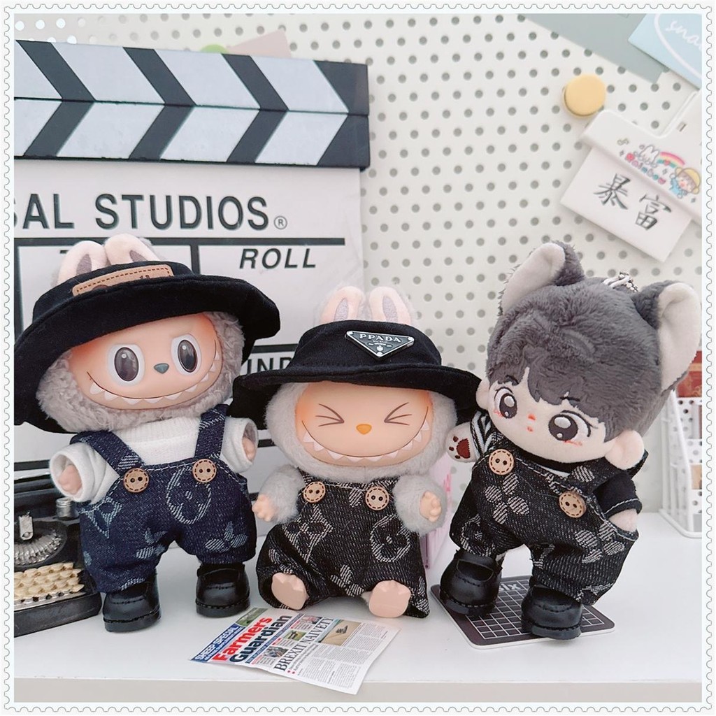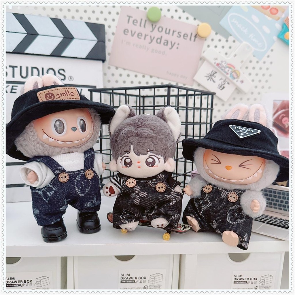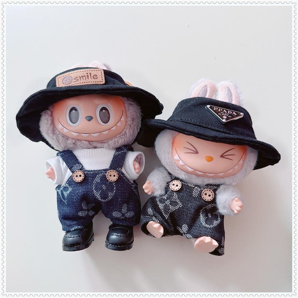 Labubu doll clothing 17cm doll clothing 12th Generation labubu doll clothes 17cm labubu 10cm Cotton doll Trendy Pioneer Overalls Bucket Hat