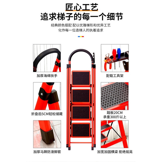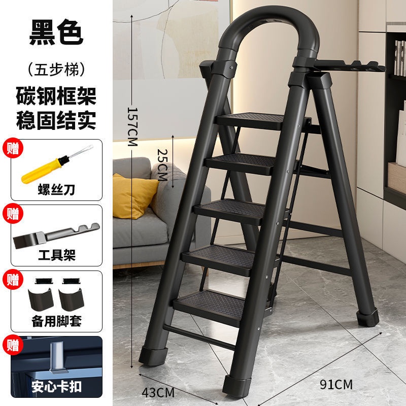 Ladder domestic folding ladder thickened carbon steel herringbone ladder domestic ladder mobile stair step multifunctional indoor ladder
