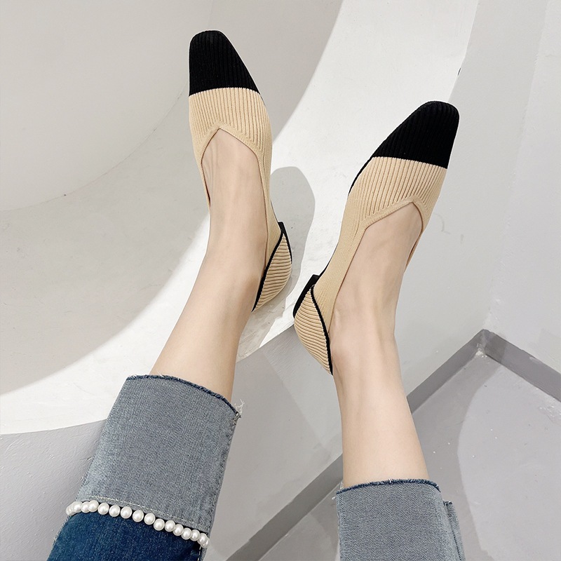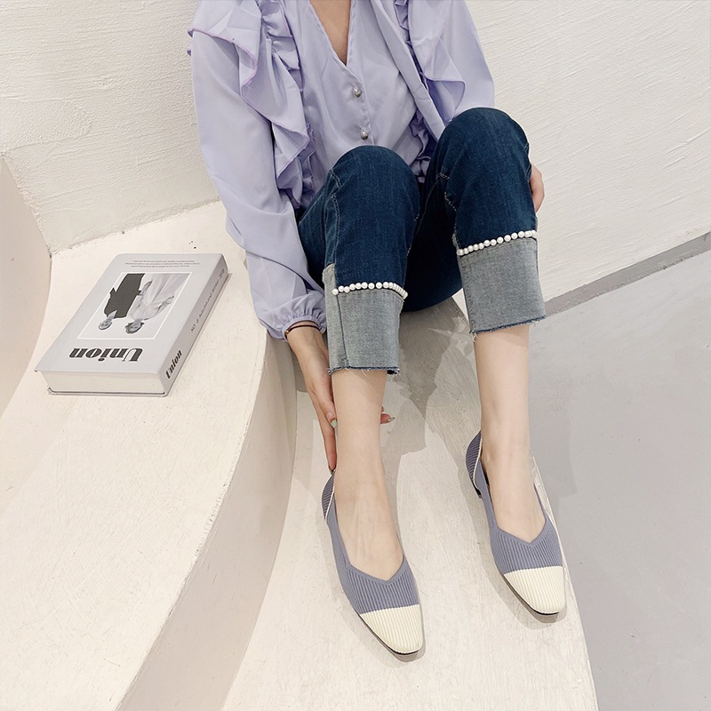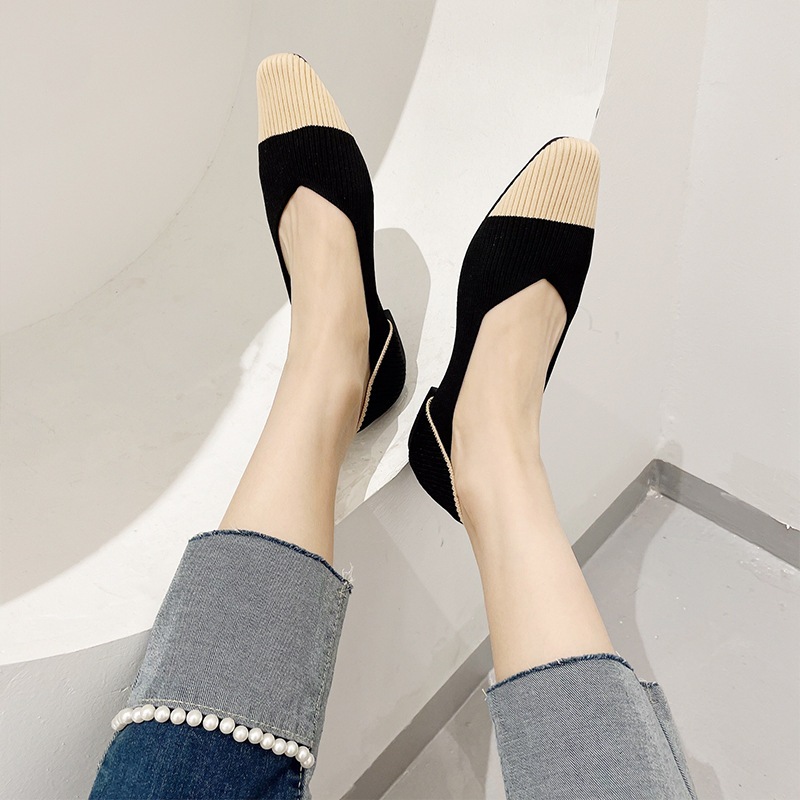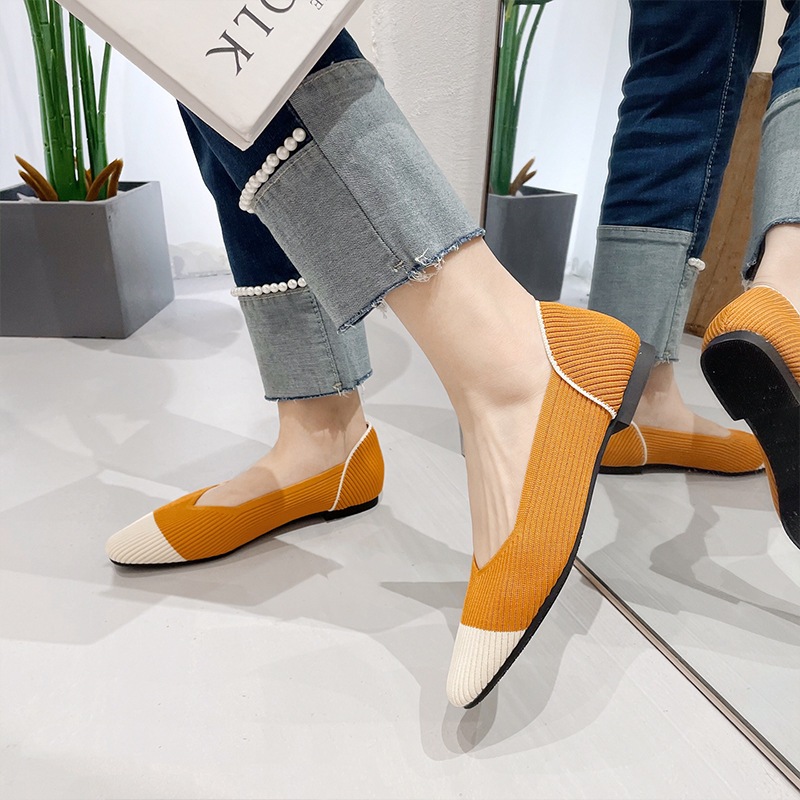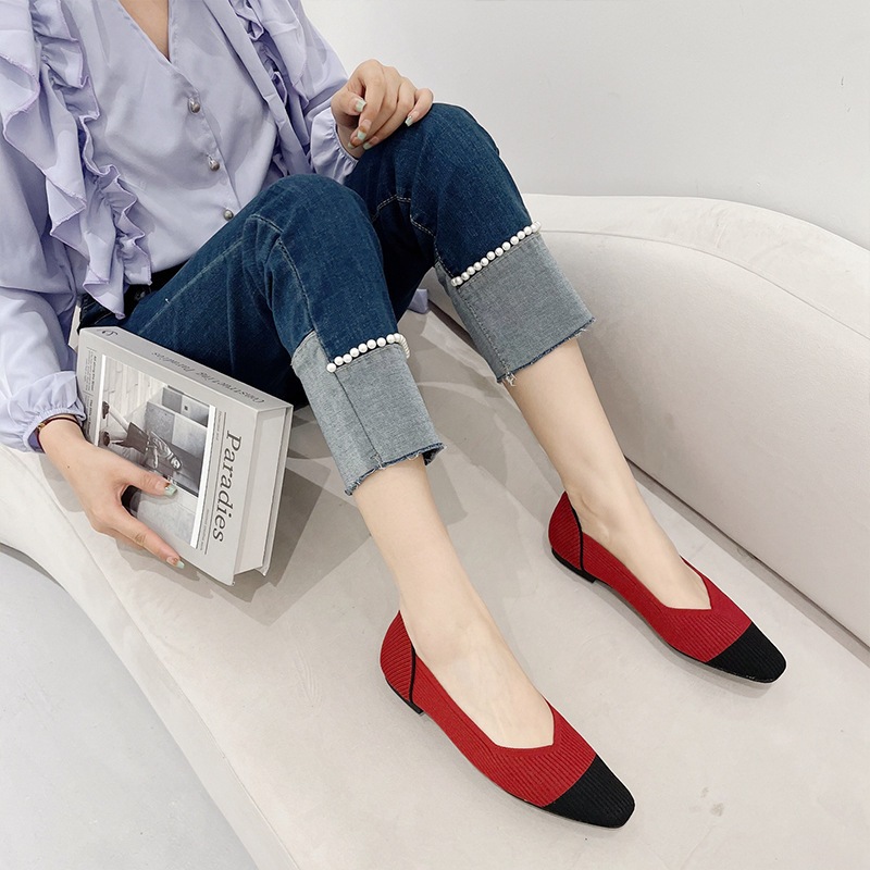 Ladies Flat Shoes New Style Small Square Toe Shallow Mouth Shoes Soft Sole Women Shoes Color Matching [Size 34-43 Can Be Customized] [2033-ZC]