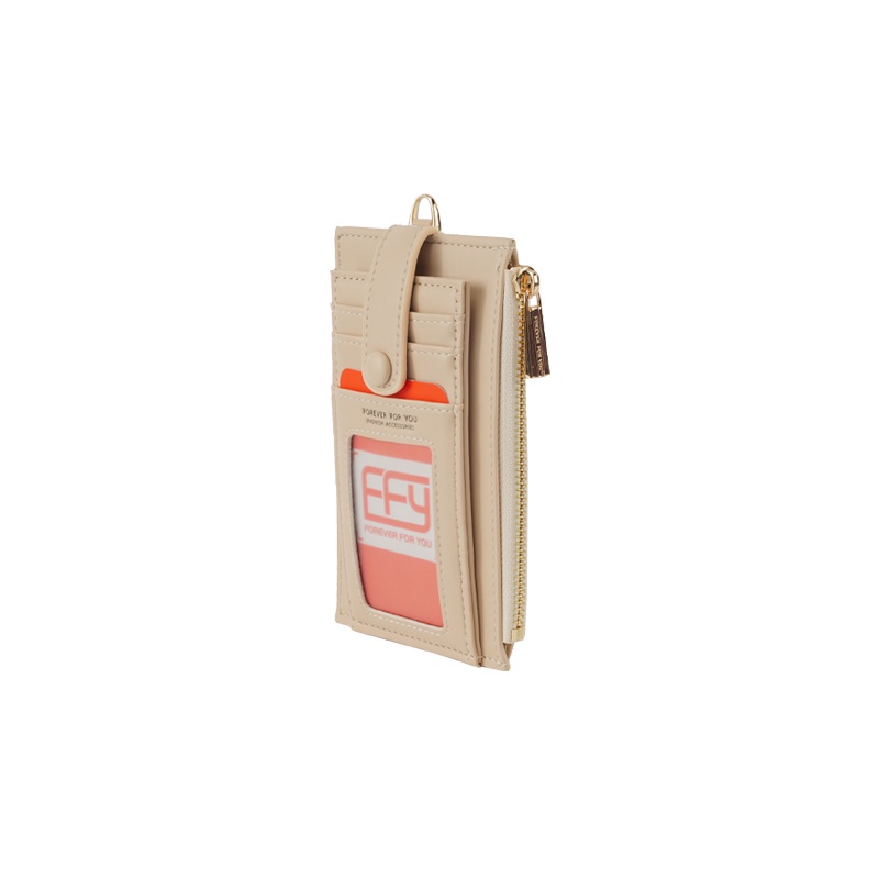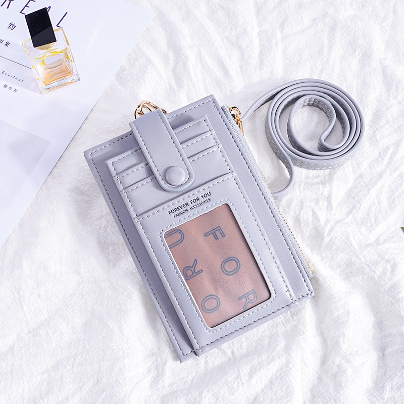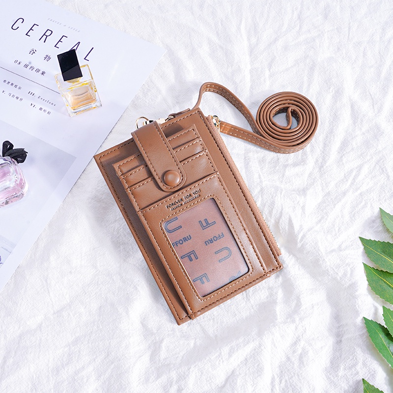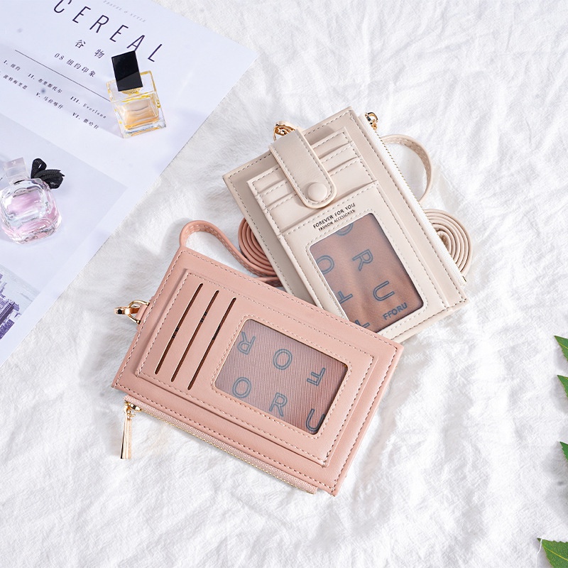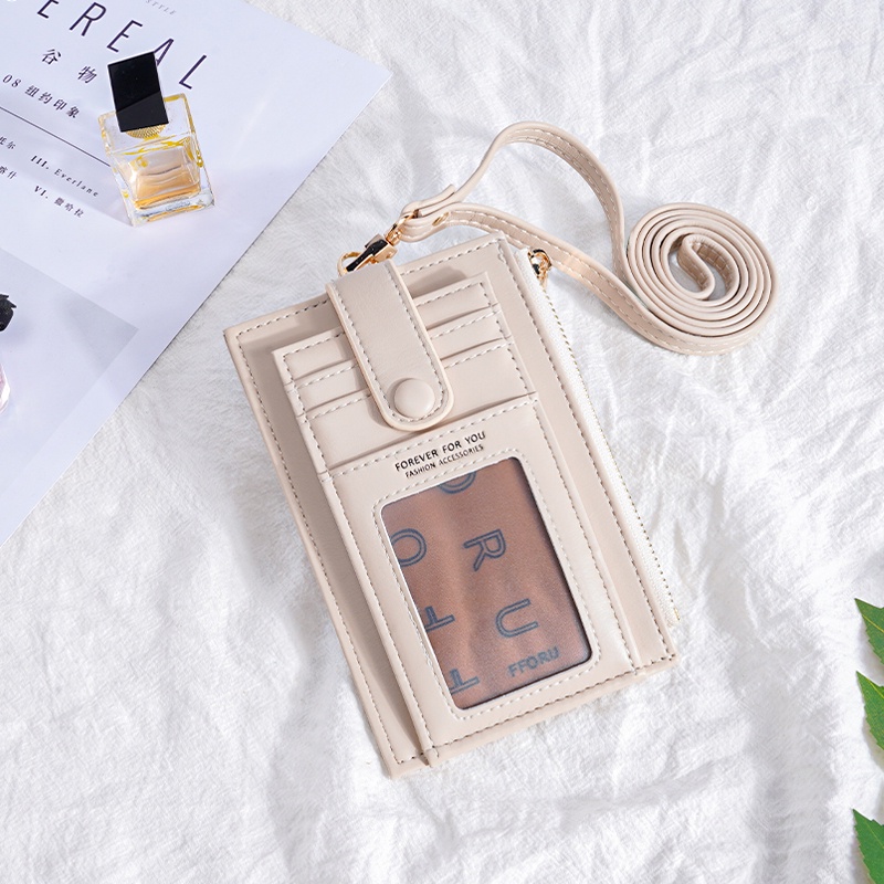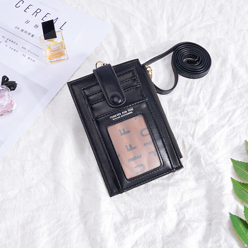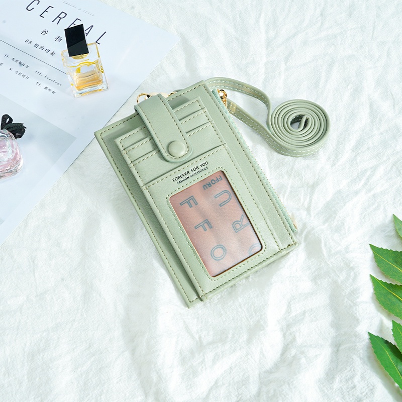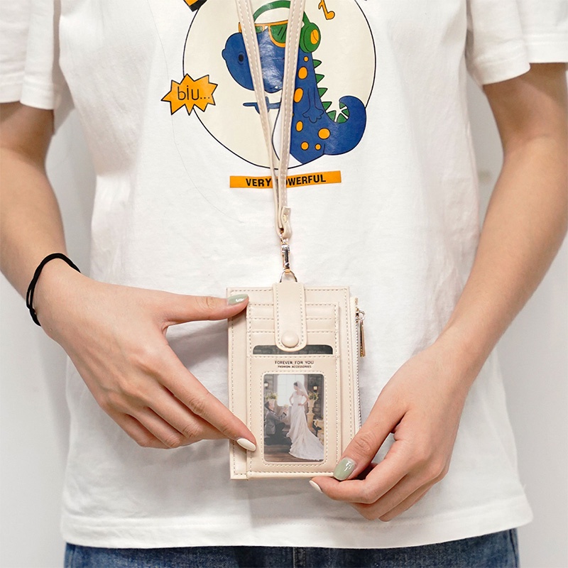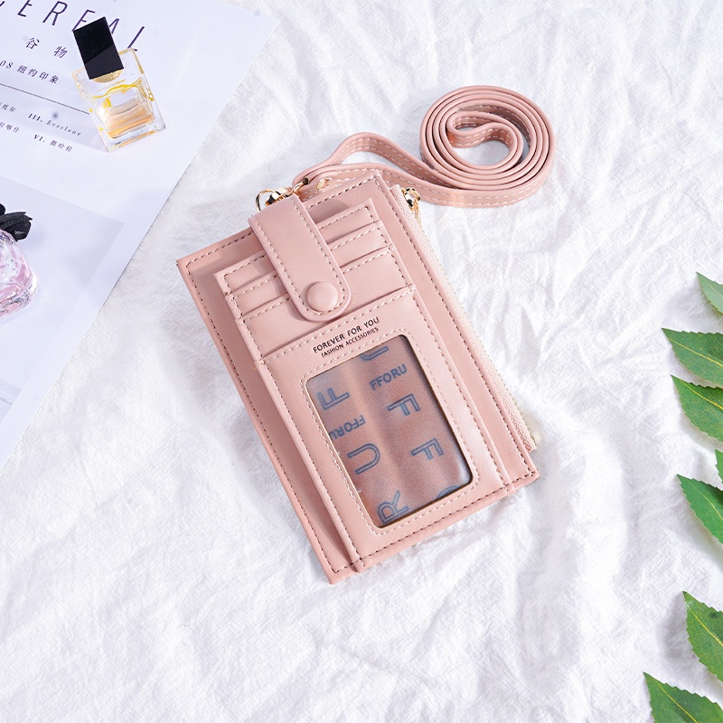 Ladies Lanyard Card Holder Wallet Solid Color Women Bifold PU Coin Purse Pemegang Kad Lanyard