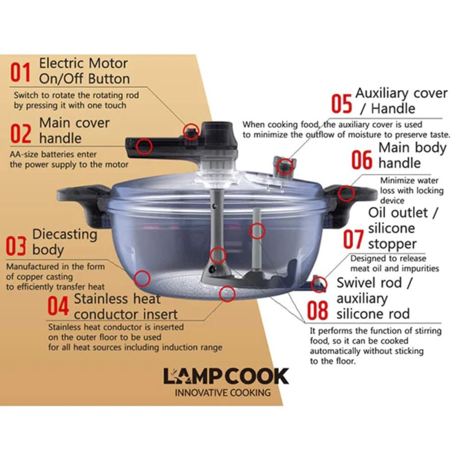 Lamp Cook Classic HS-0010 All-Round Automatic Rotating Stirring Pot Pan Cookware