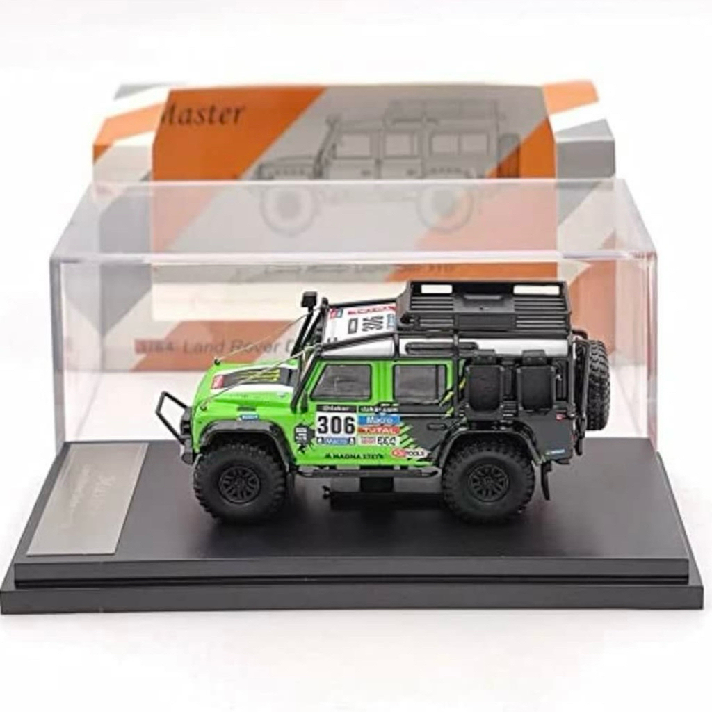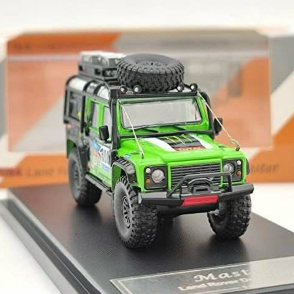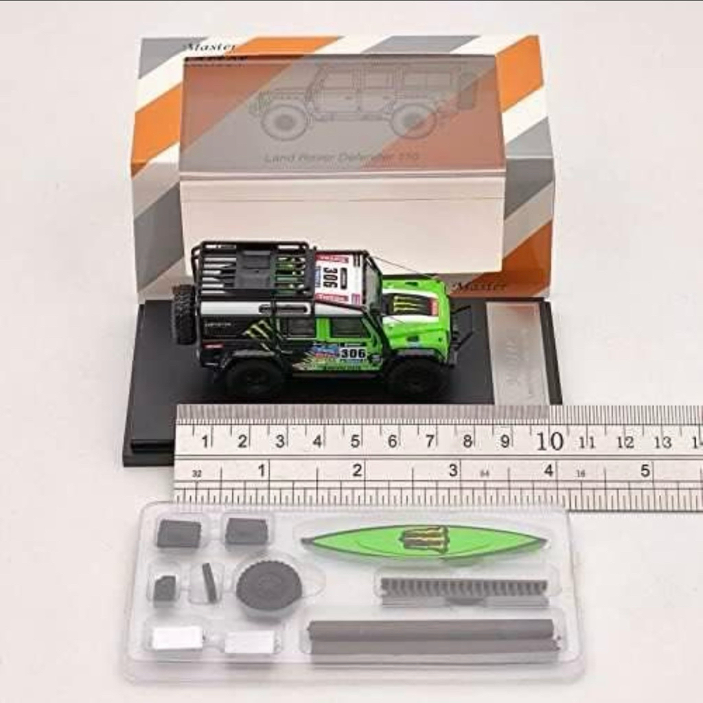 Land Rover Defender 110 Monster Energy Livery 1/64 custom diecast + accessories with display case
