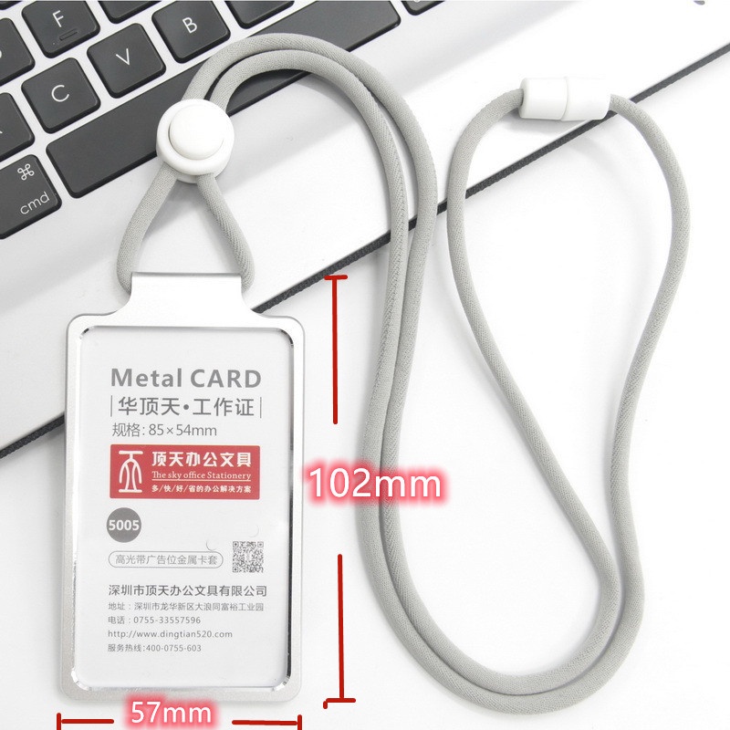 Lanyard ID Card Holder Business Card Holder Metal Frame Desk Accessories Photocard Holder Aluminum Alloy Office Supplies Stationery Holder Cards with Detachable Landyard