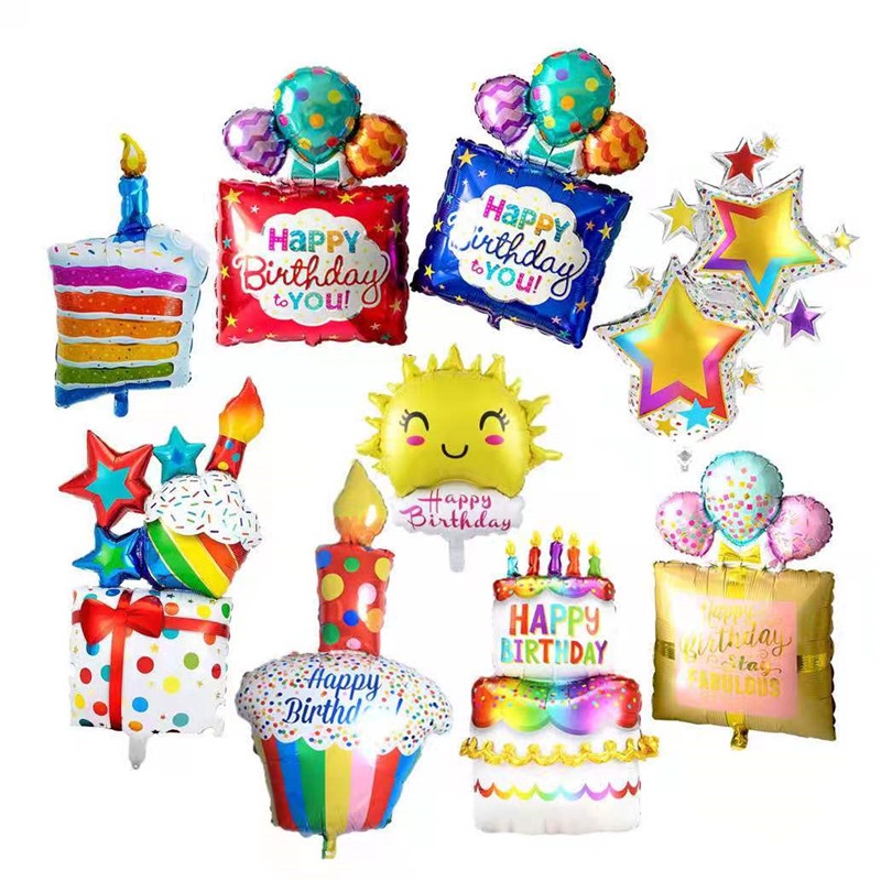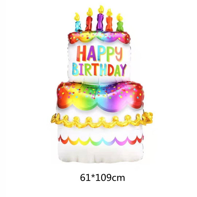 Large 4D Birthday Gift Candle Stripe Aluminum Film Balloon Three Layer Cake Balloon Birthday Party Decoration