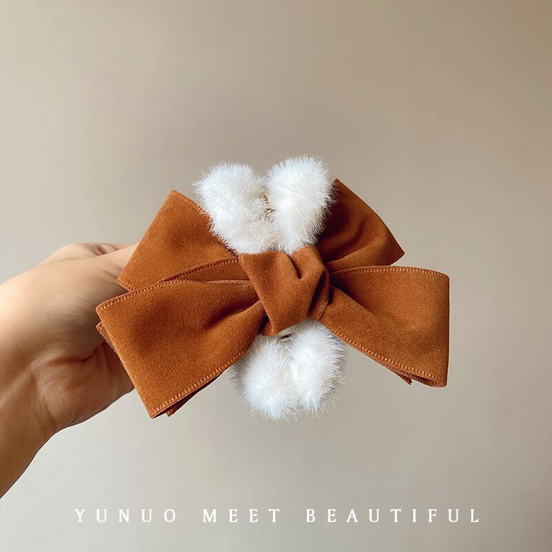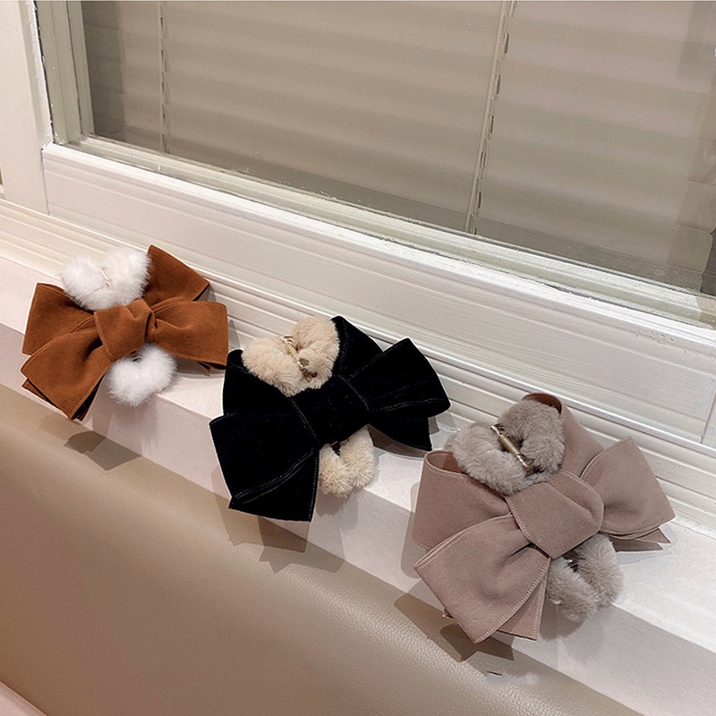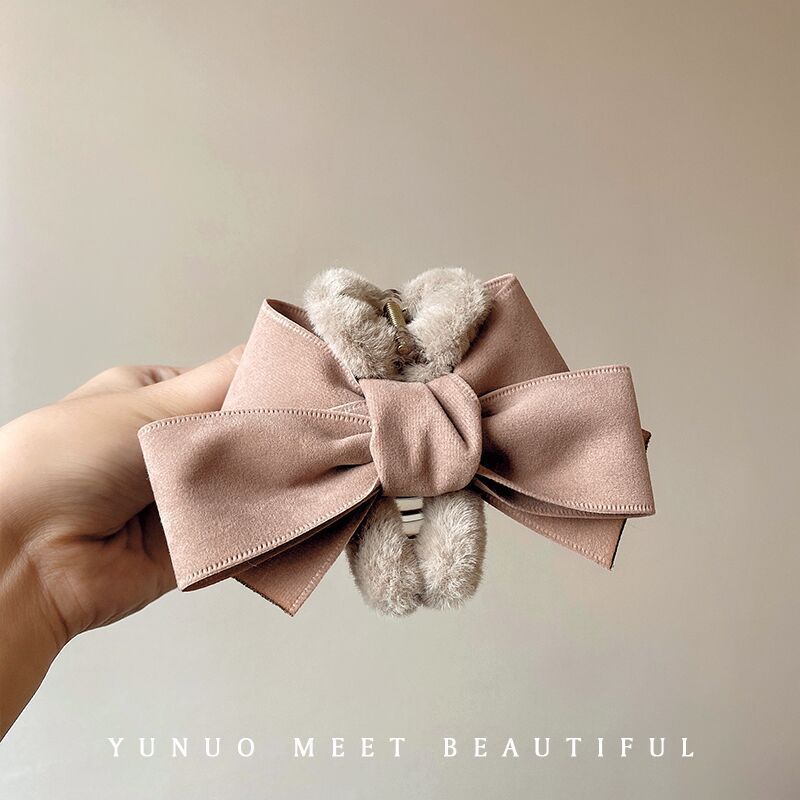 Large Bow Plush Grab Clip Female Autumn Winter French Hair Clip Back Head Hairpin Hairy Shark Clip Hair Grab Headdress