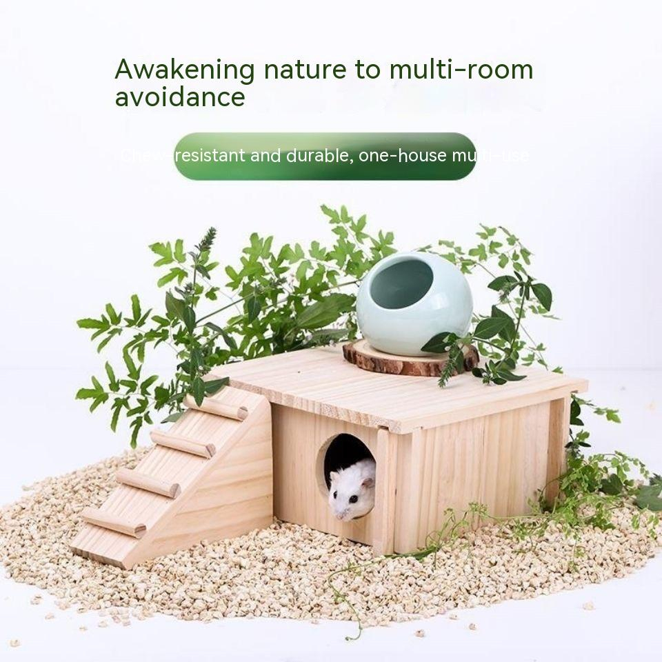 Large Piece Hamster Multi-Bedroom Wooden Hiding House Hut Ludding Chicken Nest Landscaping Supplies Toys Furniture Platform