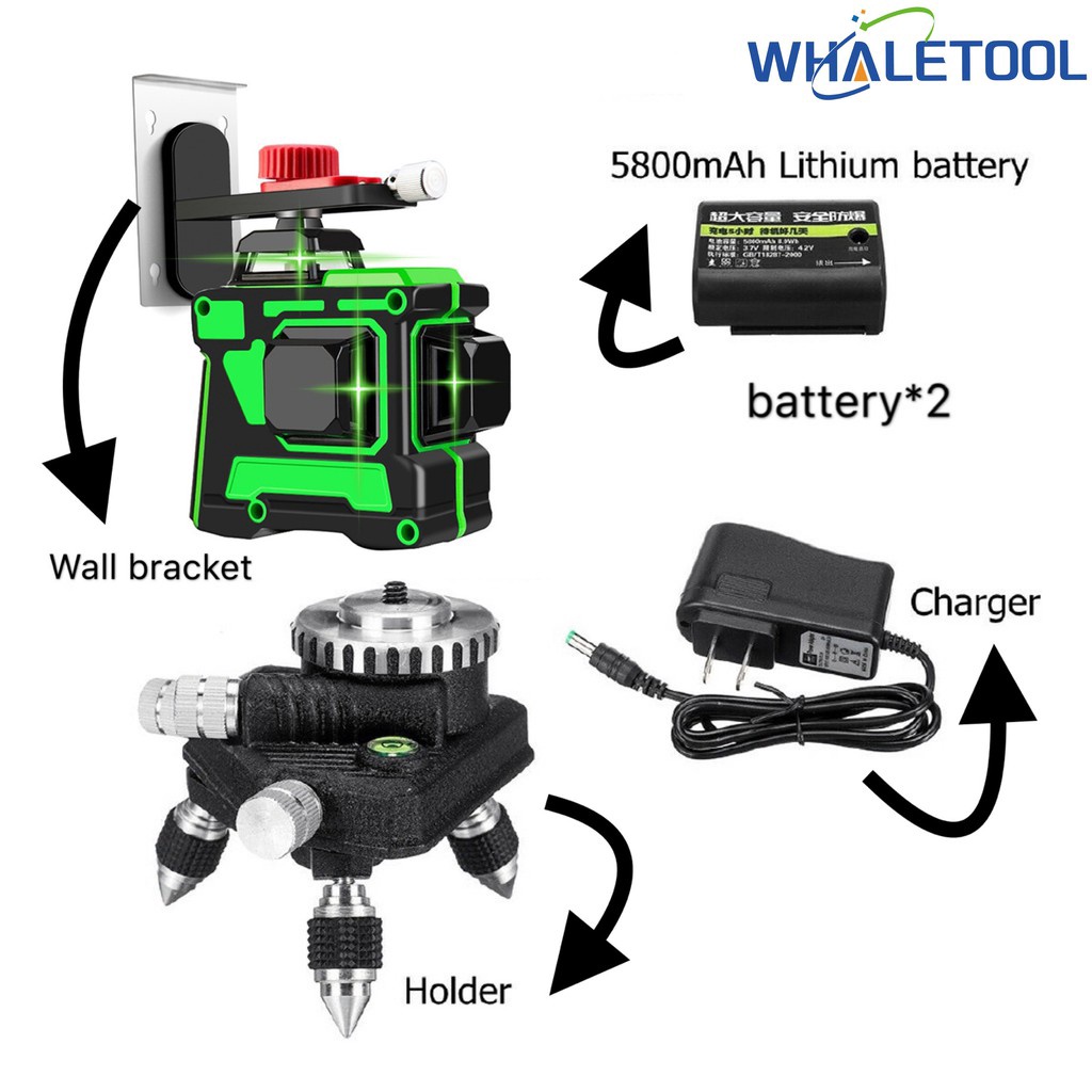 Laser Level 12 Lines 3D Self-Leveling 360 Horizontal And Vertical Cross Magnet Bracket Green Laser Beam Line + 1m tripod