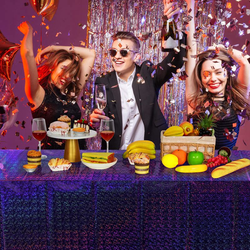 Laser Plastic Tablecloth Shiny Disposable Laser Rectangle Table Covers Holographic Foil Tablecloth Iridescent Party Decoration Birthday Bridal Wedding
