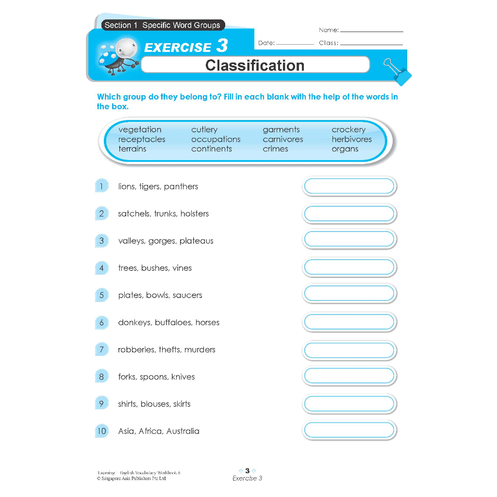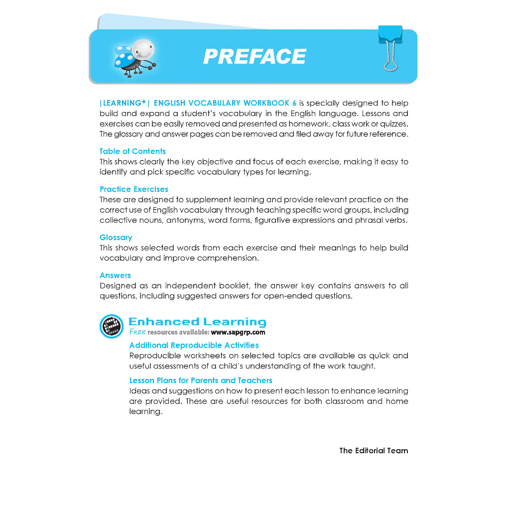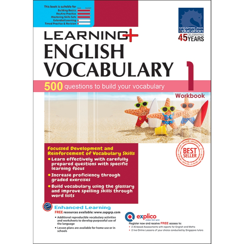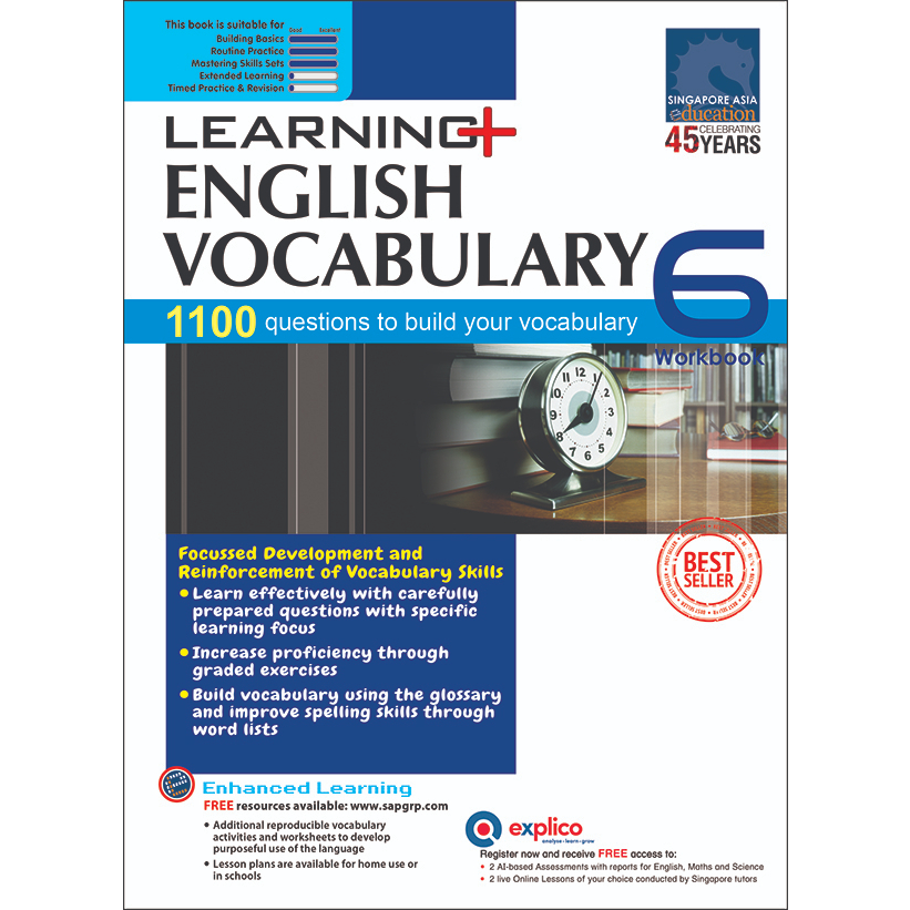 Learning+ English Vocabulary Workbook 1 - 6 | Skill-based | Primary English School Assessment Books - SAP