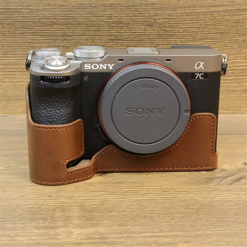 Leather Camera Bag Body Case For Sony A7CII A7C2 With Battery Opening Half Body Set Cover camera Case
