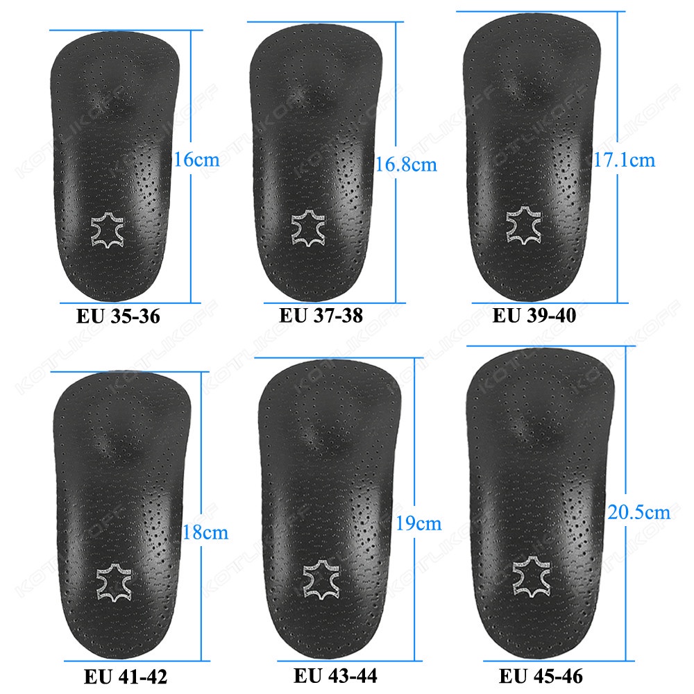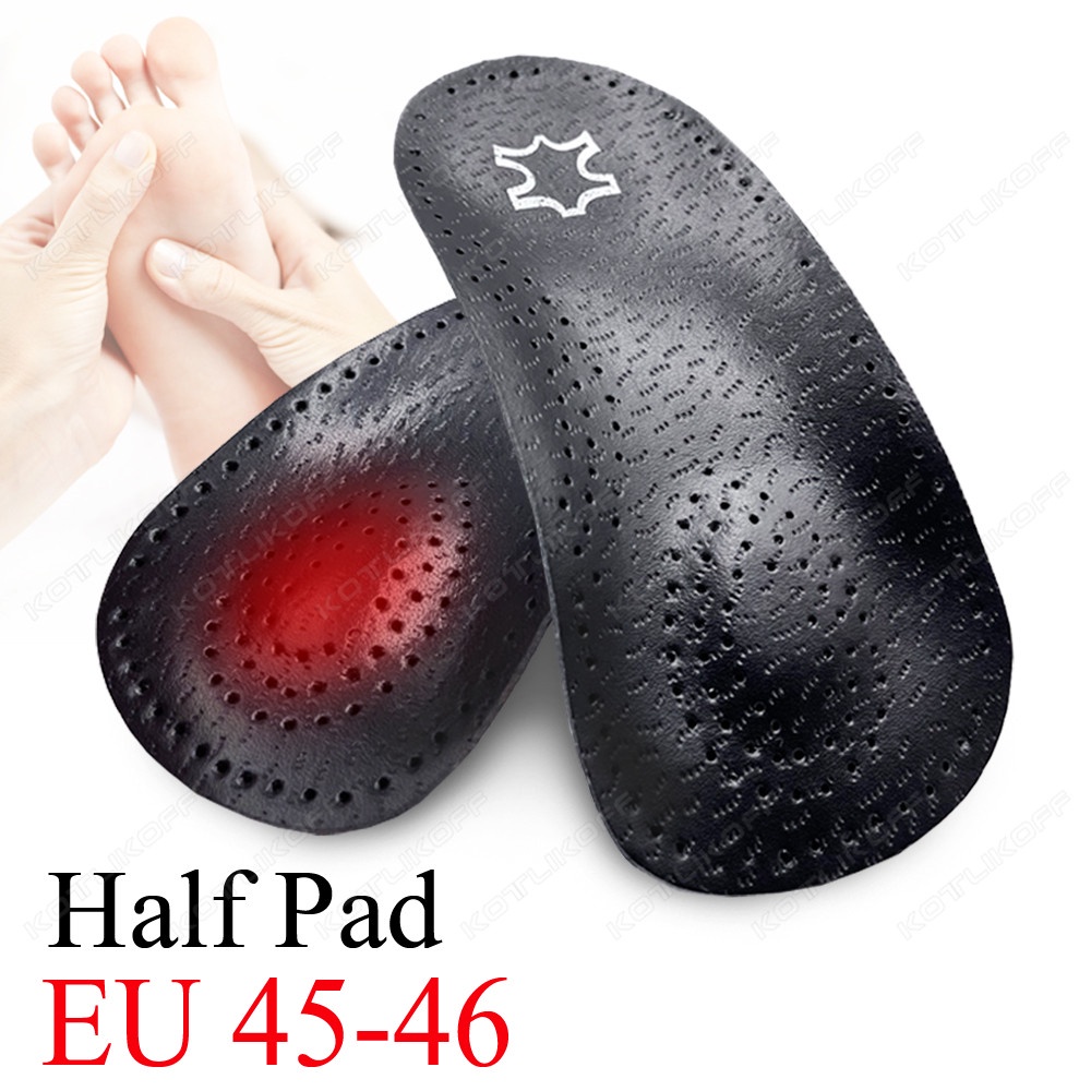 Leather Insoles For Shoes Sole Men Women Black Recycled Leather Half/Full Pads Flat Feet Arch Support O/X Leg Corrected Insert