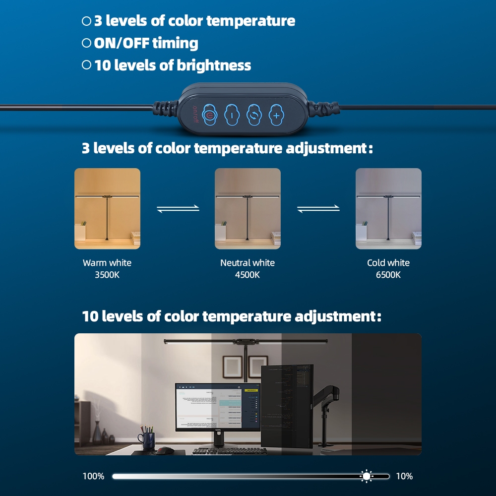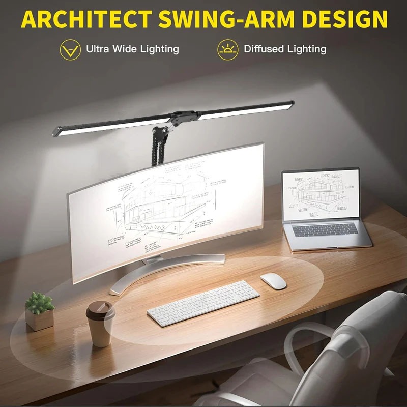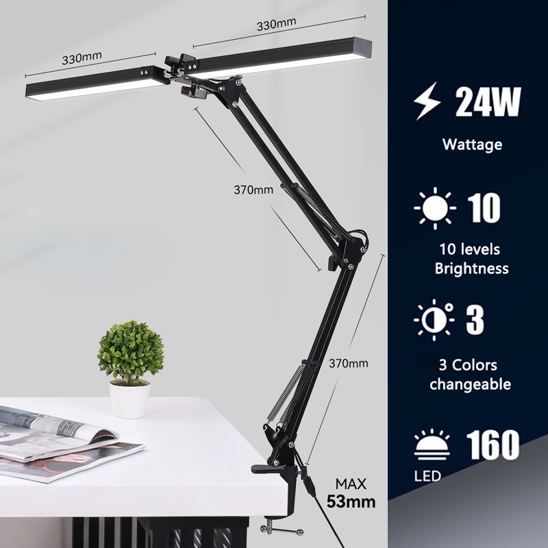 Led Table Lamp Dimmable Double Head Desk Lamp 3 Color Study Reading Light Office Bedroom Lighting