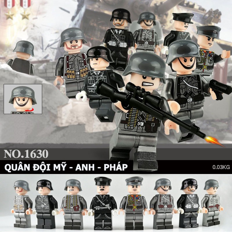 Lego Minifigures US British French military alliance in World War II combo of 8 characters