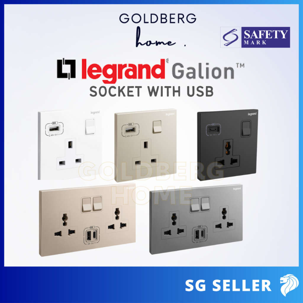 Legrand Galion Socket with USB White Dark Silver Champagne Rose Gold Matt Black | Goldberg Home
