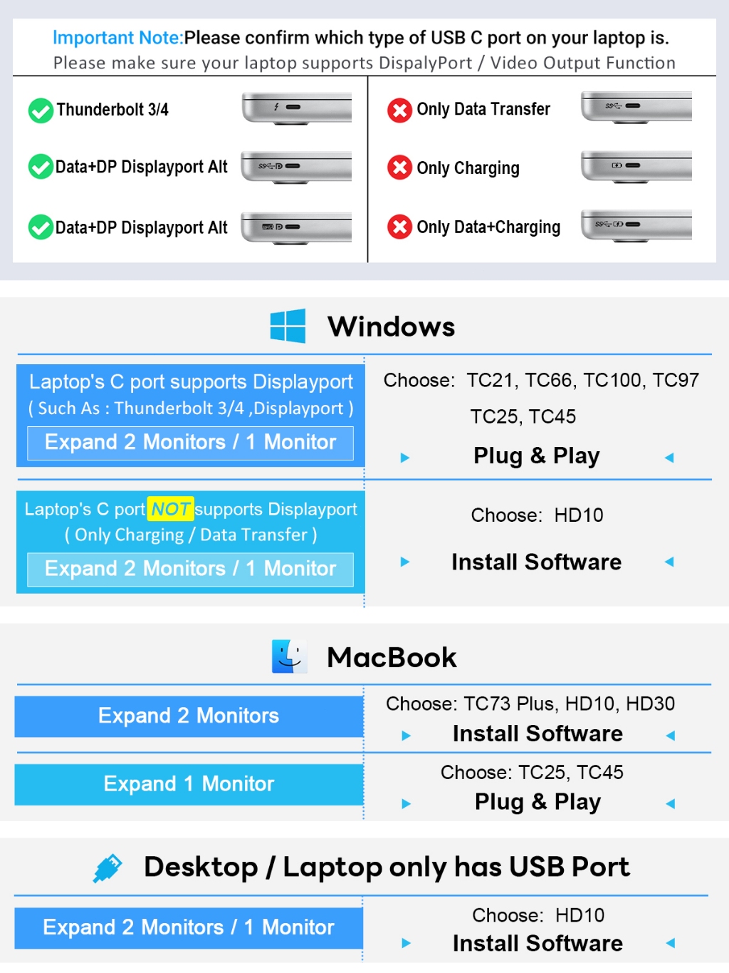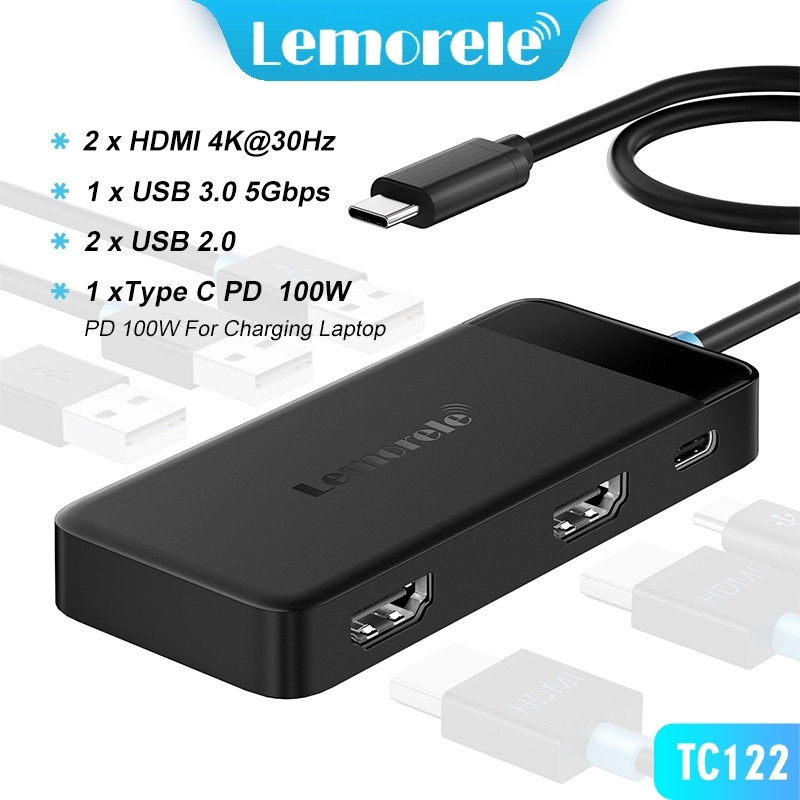 Lemorele Hdmi Splitter USB C To Dual Hdmi Adapter Type C To 2 Hdmi Docking Station USB C Hub