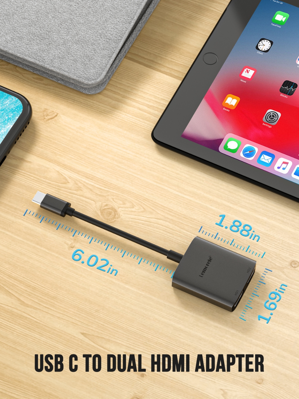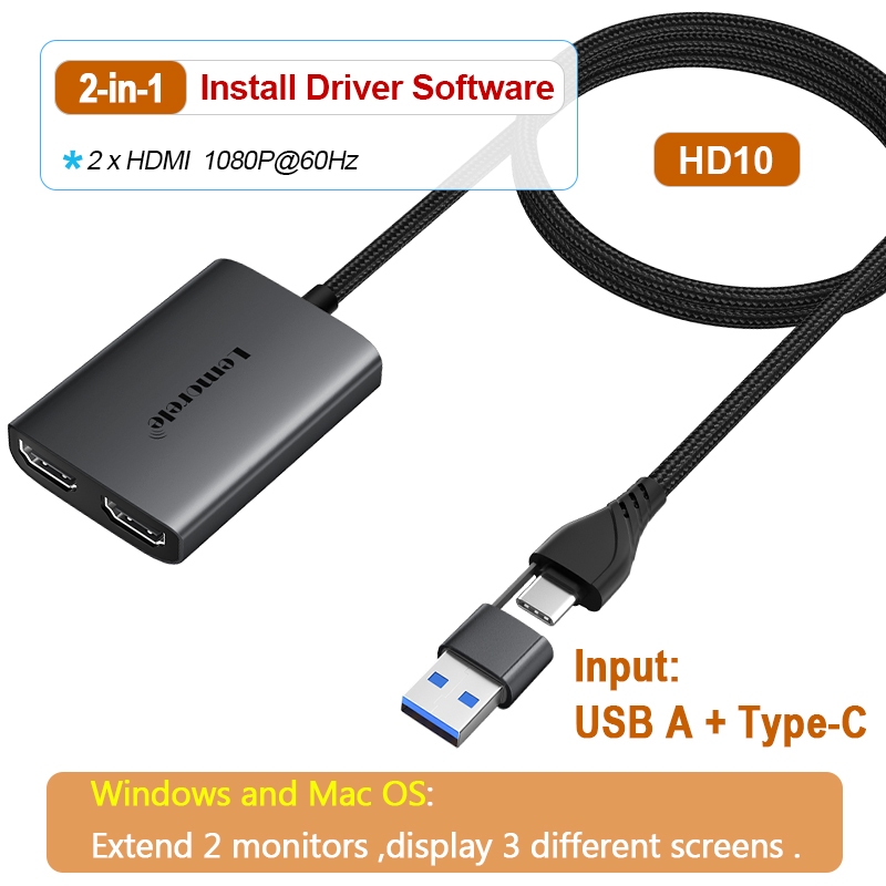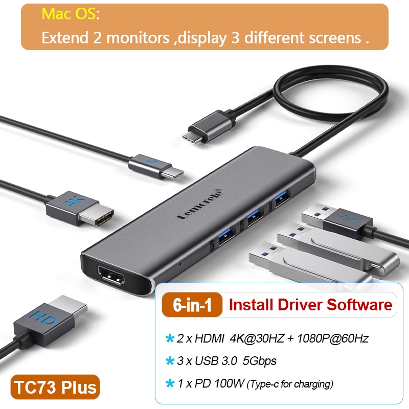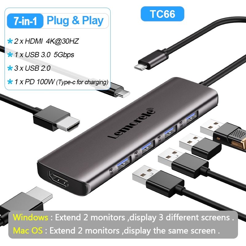 Lemorele Hdmi Splitter Usb C To Dual Hdmi To Type C To Hdmi Adapter Extender 2 Monitor Usb C Hub