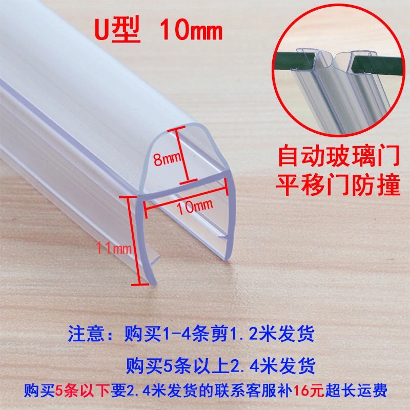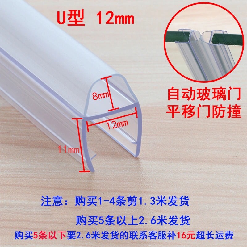 Lengthened 2.6 M U-Shaped Glass Automatic Sliding Collision Windproof Frameless Balcony Window Glass Door Sealing Strip/Glass Door Tape Sealing Silicone Rubber Window Glass